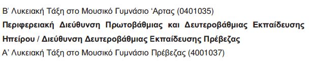 Ιδρύονται Λυκειακές τάξεις σε Πρέβεζα και Άρτα.