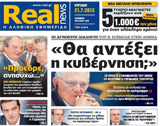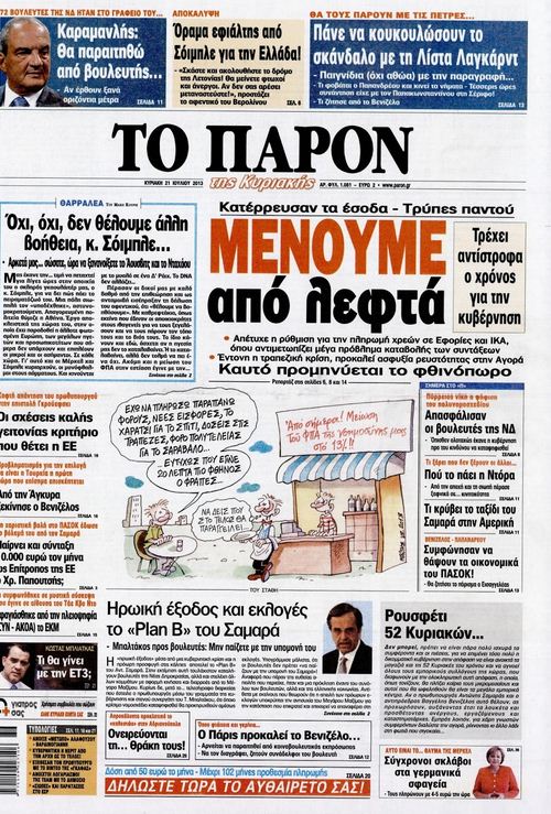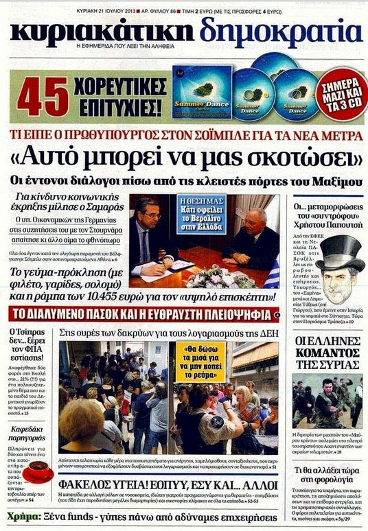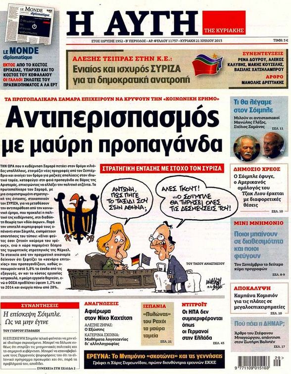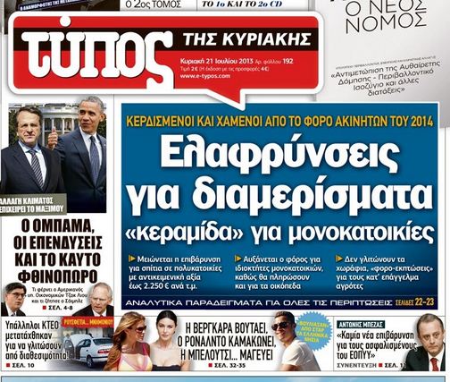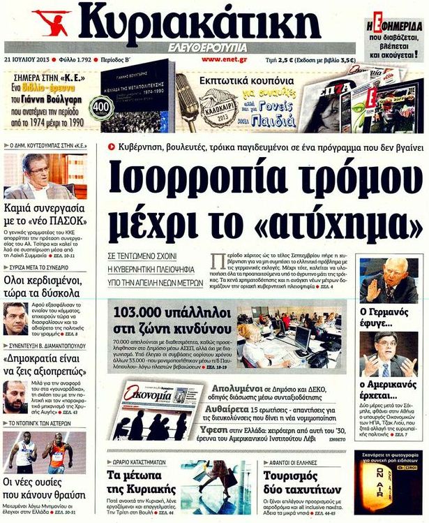 Κυριακάτικα πρωτοσέλιδα 21-7-2013