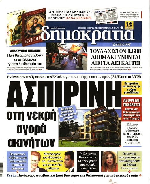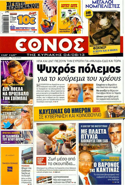 Κυριακάτικα πρωτοσέλιδα 4-8-2013