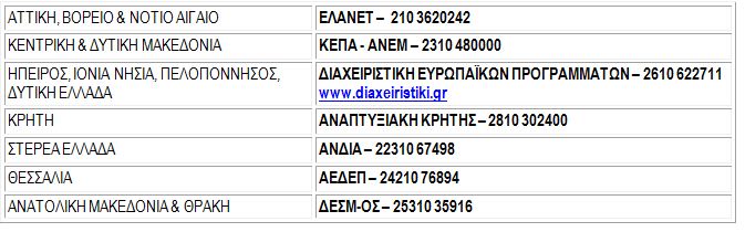 Για περαιτέρω πληροφορίες και ανάλογα με την περιφέρεια οι ενδιαφερόμενοι μπορούν να απευθύνονται στους εταίρους του ΕΦΕΠΑΕ στα παρακάτω τηλέφωνα: