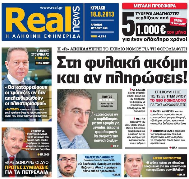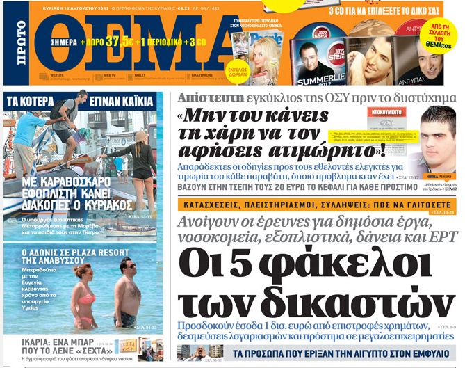 Κυριακάτικα πρωτοσέλιδα 18-8-2013