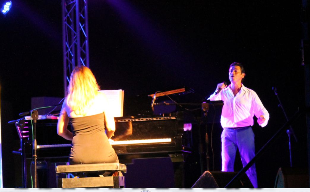 Λίγα μετά την έναρξη συναυλίας ..... ο Μάριος Φραγκούλης παρουσιάζει στο κοινό της Πρέβεζας την πιανίστρια της παράστασης Ελένη Χούντα....... η οποία και καταχειροκροτείται....