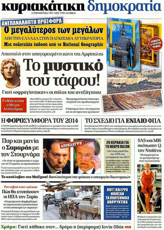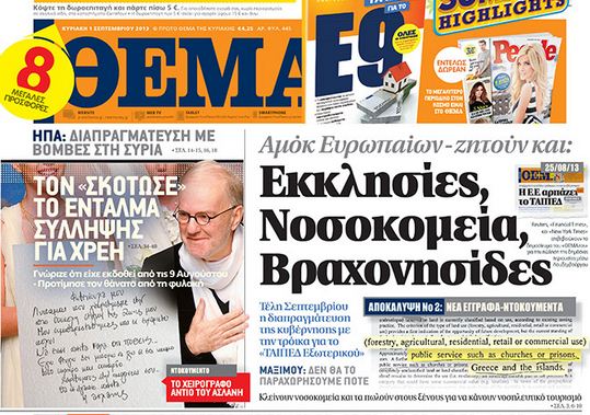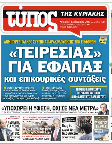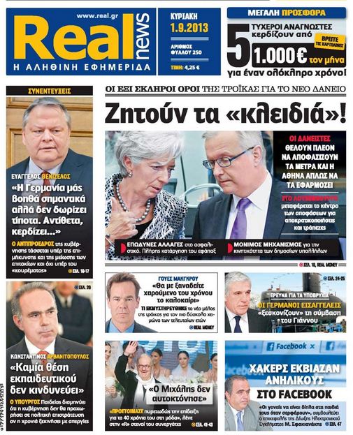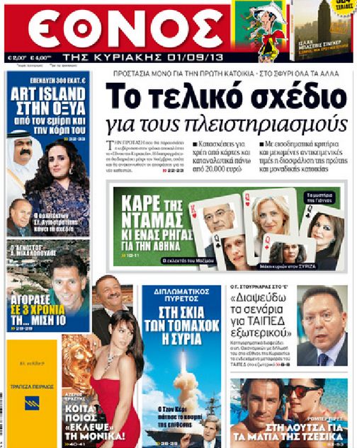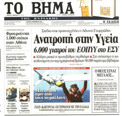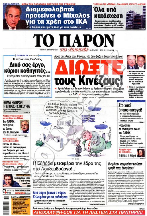 Κυριακάτικα πρωτοσέλιδα 1-9-2013