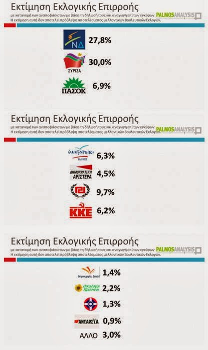 Μπροστά ο ΣΥΡΙΖΑ 2,5 μονάδες από ΝΔ σε δημοσκόπηση του TVXS.GR