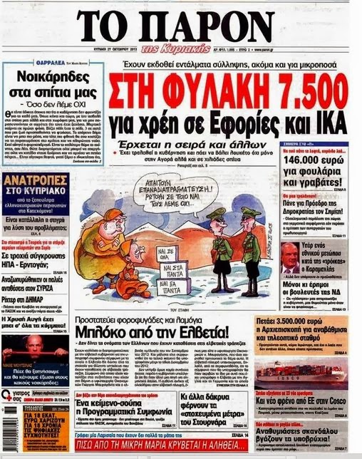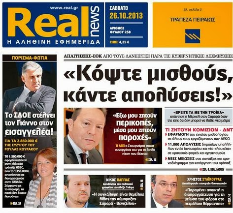 Κυριακάτικα πρωτοσέλιδα 27-10-2013