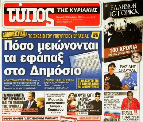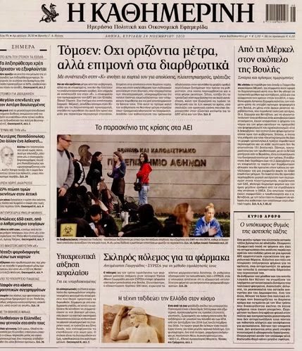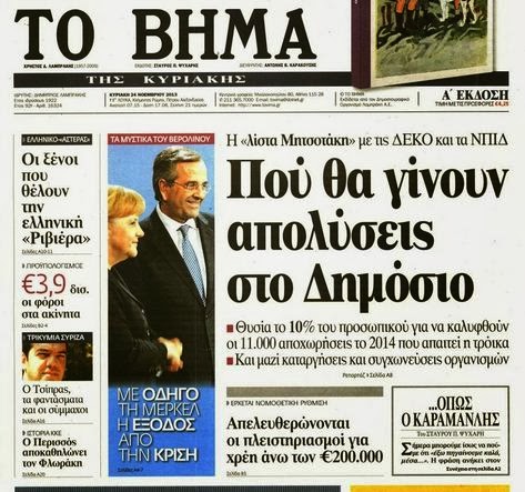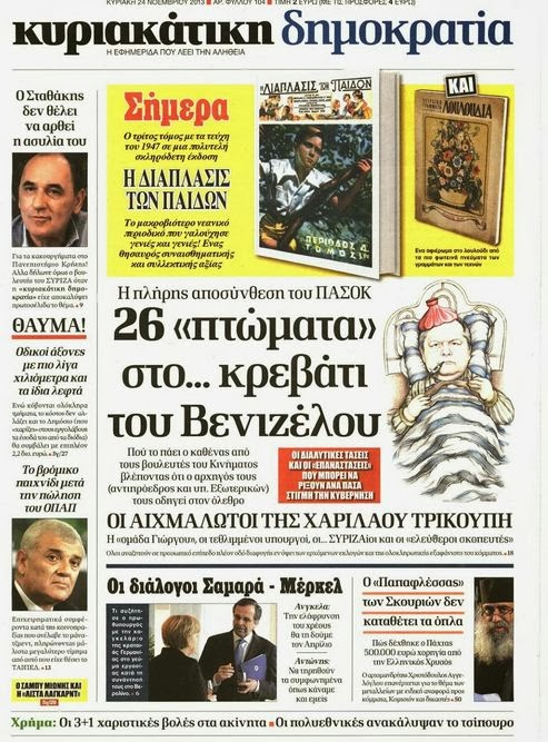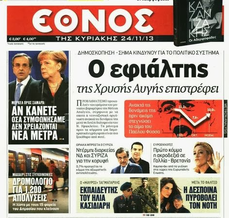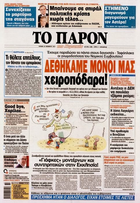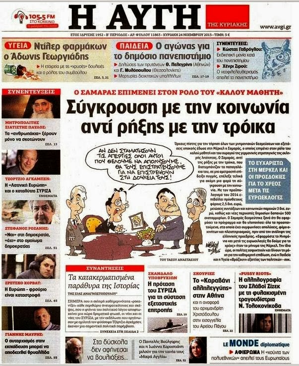 Κυριακάτικα πρωτοσέλιδα 24-11-2013