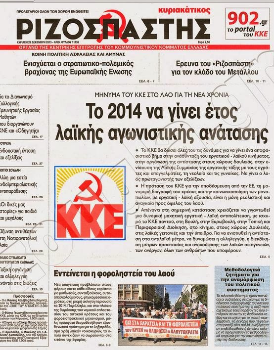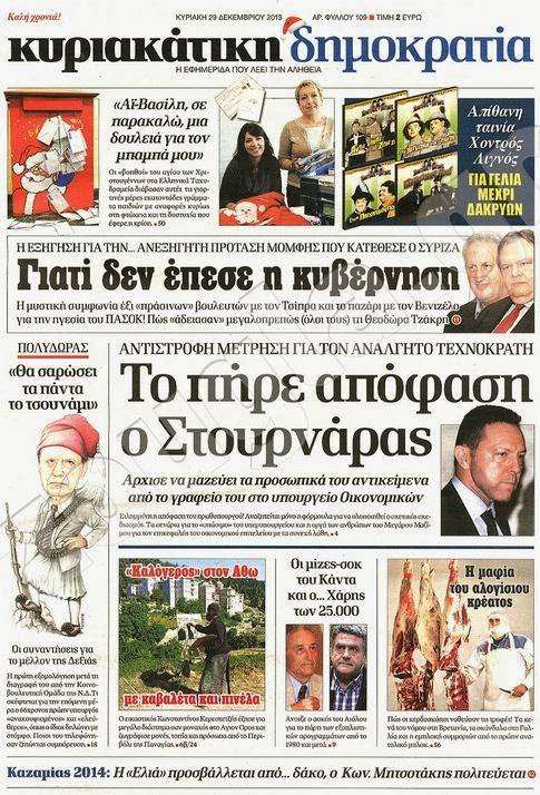 Κυριακάτικα πρωτοσέλιδα 29-12-2013