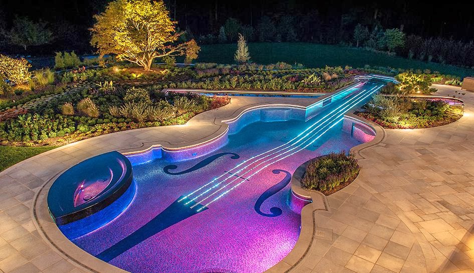 Violin shaped swimming pool. Photo by: Cipriano Landscape Design
