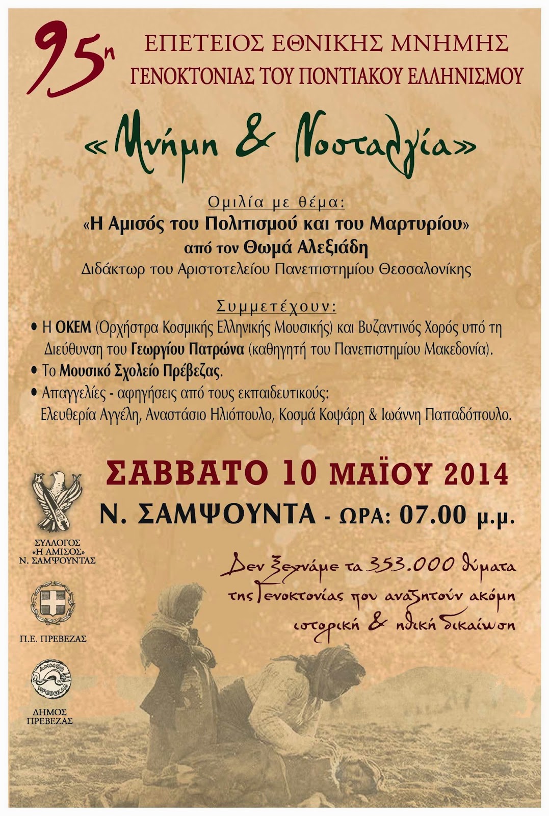 Νέα Σαμψούντα Πρέβεζας: εκδήλωση για την 95η ΕΠΕΤΕΙΟ ΕΘΝΙΚΗΣ ΜΝΗΜΗΣ ΤΗΣ ΓΕΝΟΚΤΟΝΙΑΣ ΤΟΥ ΠΟΝΤΙΑΚΟΥ ΕΛΛΗΝΙΣΜΟΥ.