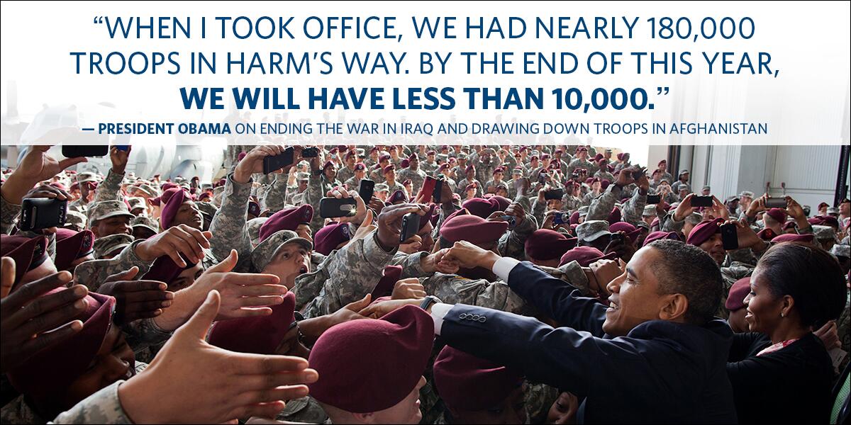 Μέ ένα μηνυμα στα social media ο Λευκός Οίκος ενημερώνει ότι μέχρι το τέλος τους έτους αποσύρονται οι αμερικανικές δυνάμεις από το Ιρακ ενώ λιγότεροι από 10.000 Αμερικανοί θα βρίσκονται στο Αφγανιστάν.