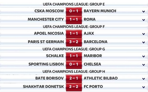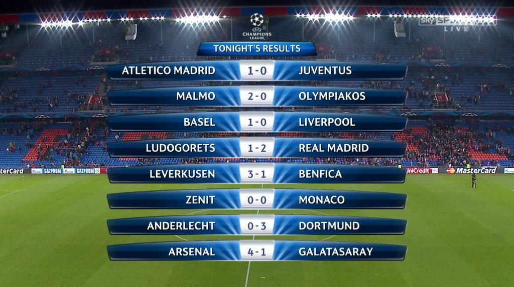 Τα τελικά αποτελέσματα της 2ης ''ημέρας'' του ChampionsLeague