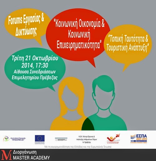 διοργανώνει δύο Forum Εργασίας & Δικτύωσης, την Τρίτη 21 Οκτωβρίου 2014 &