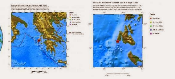 Το επίκεντρο είναι 10 χιλ.από το Λιξούρι και 13 από το Αργοστόλι.
