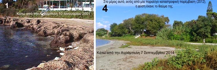 «… Ας σημειωθεί ότι η διάβρωση επιταχύνθηκε τα τελευταία χρόνια, επειδή ορισμένοι άσχετοι αφαιρούν και μάλιστα σε βάθος τα συσσωρευμένα φύκια (εικόνα 2) που αποτρέπουν τη διάβρωση … (εικόνα 1)».
