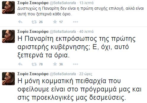 Η Παναρίτη εκπρόσωπος της πρώτης αριστερής κυβέρνησης; Ε, όχι, αυτό ξεπερνά τα όρια.