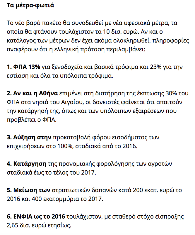 Τα προτεινόμενα μέτρα φωτιά για να επέλθει συμφωνία