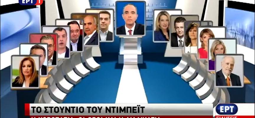 Στις 9 θα αρχίσει στο ραδιομέγαρο της ΕΡΤ το πρώτο τηλεοπτικό ντιμπέιτ μεταξύ των επτά πολιτικών αρχηγών.