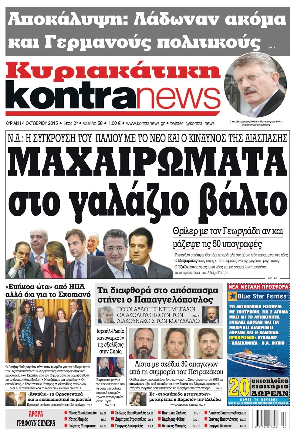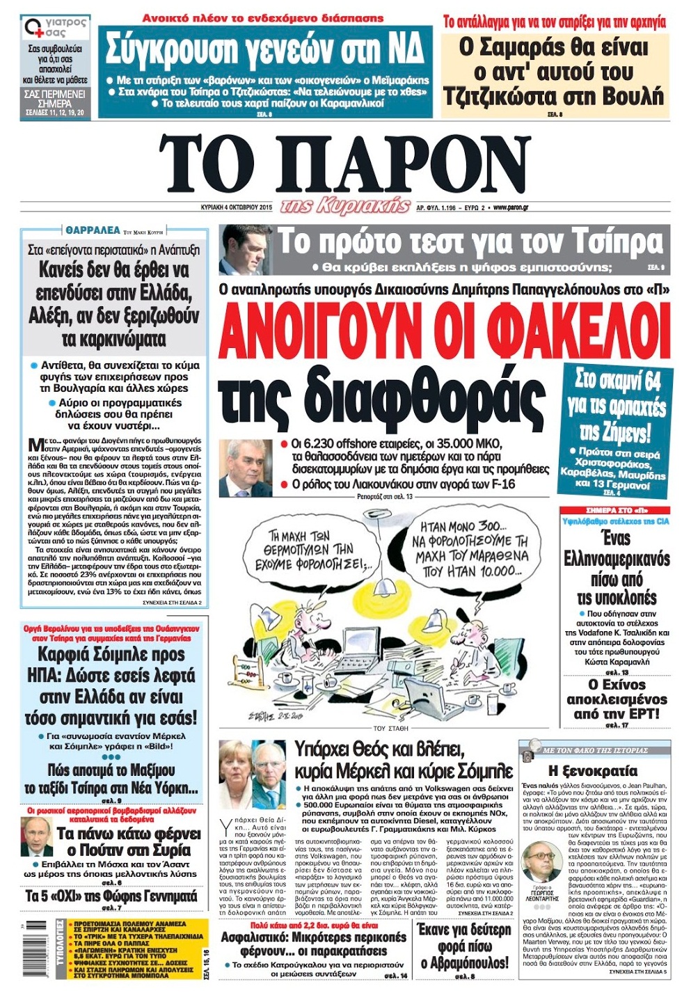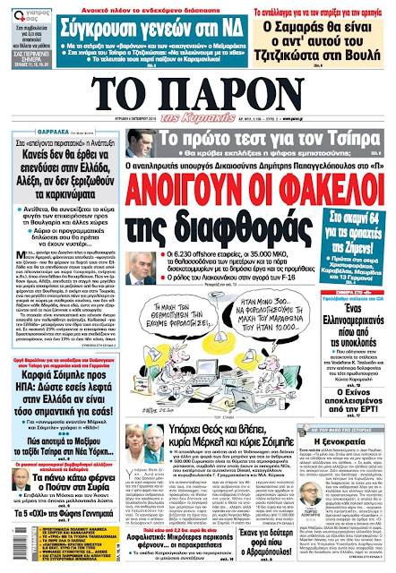 Τα πρωτοσέλιδα της Κυριακής 4-10-2015