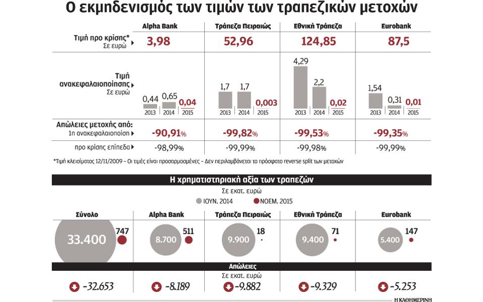 Ο εκμηδενισμός των τιμών των τραπεζικών μετοχών