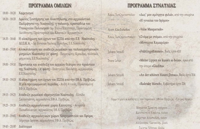 Η Εφορεία Αρχαιοτήτων Πρέβεζας και η Επιτροπή Νικόπολης-Διεύθυνση Προϊστορικών & Κλασικών Αρχαιοτήτων του Υπουργείου Πολιτισμού & Αθλητισμού σας προσκαλούν στην παρουσίαση του έργου τους στο πλαίσιο του ΕΣΠΑ 2007-2013 το Σάββατο 19 Δεκεμβρίου 2015.
