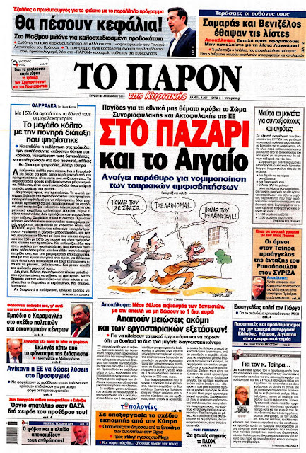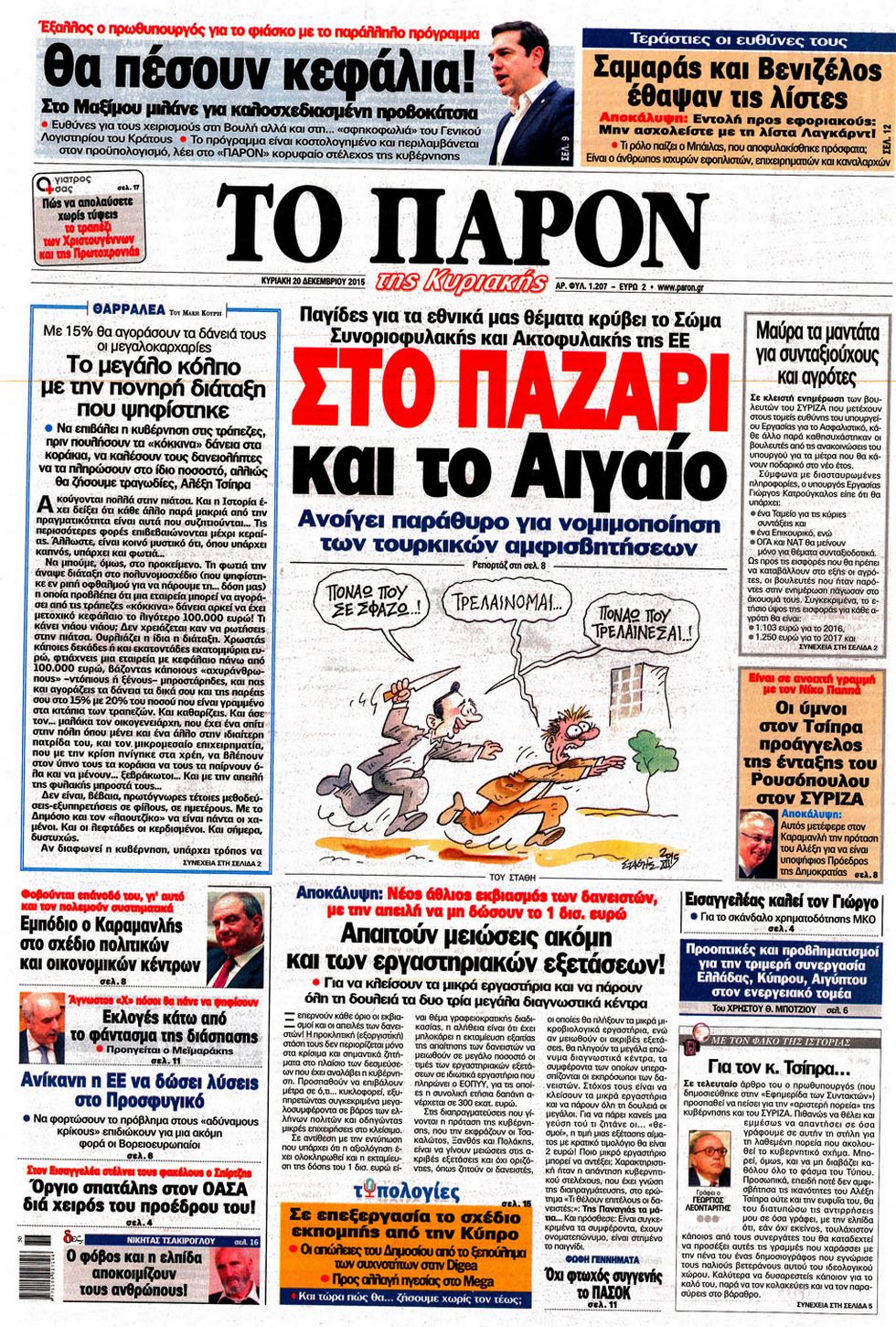 Τα πρωτοσέλιδα της Κυριακής 20-12-2015