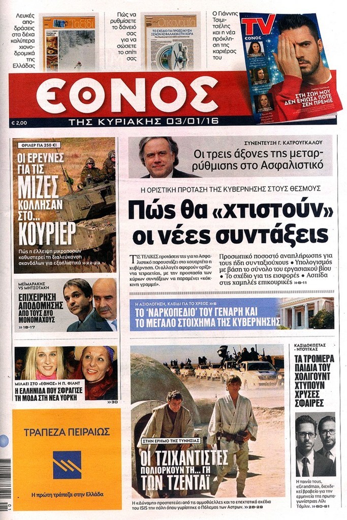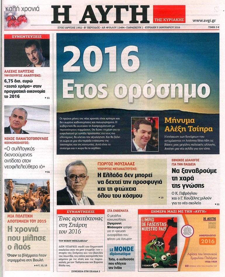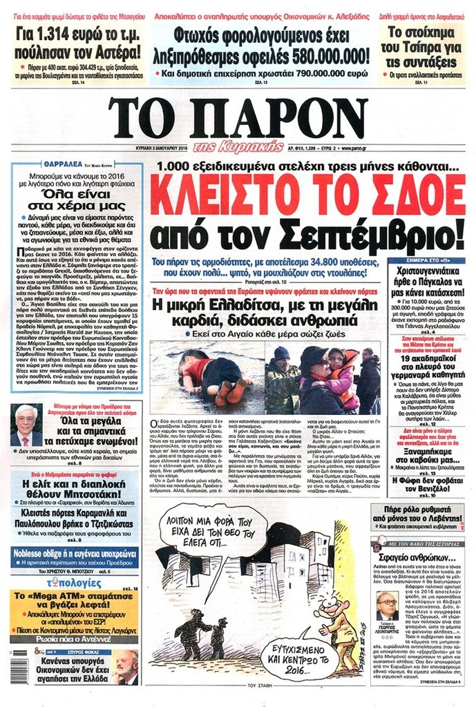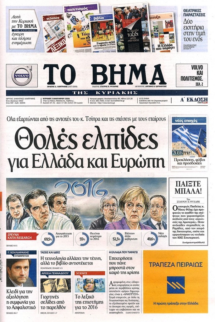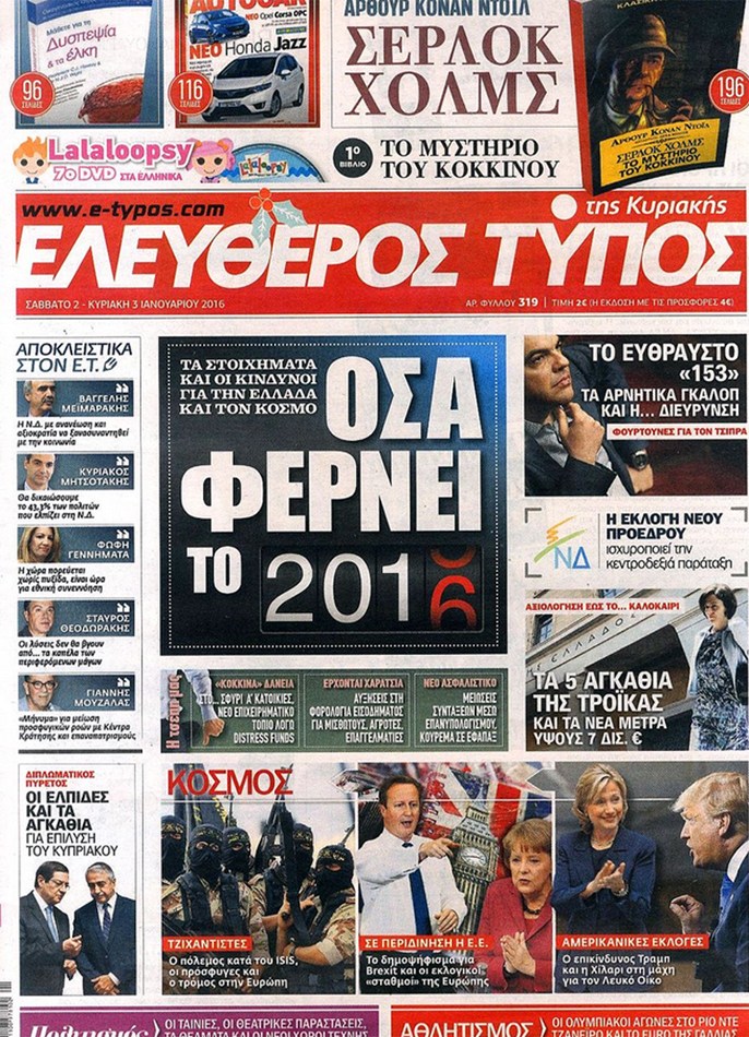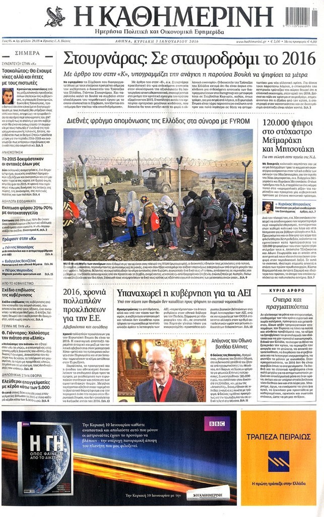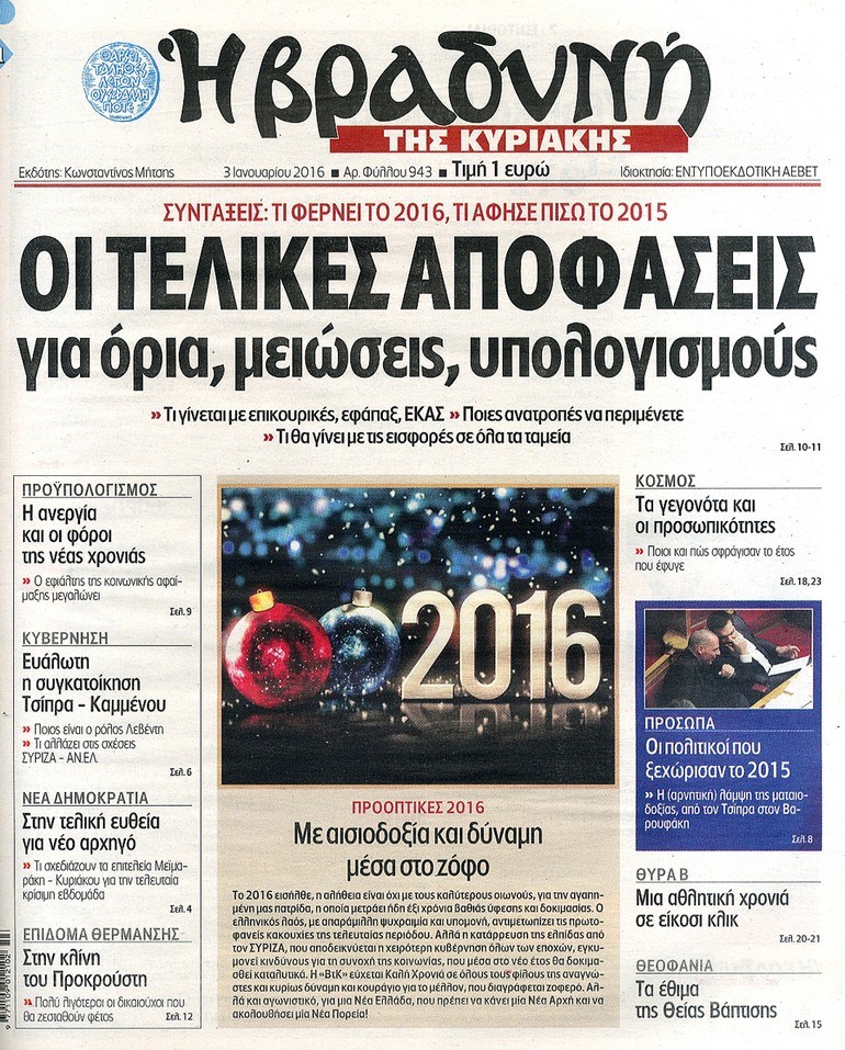 Τα πρωτοσέλιδα της Κυριακής 3-1-2016