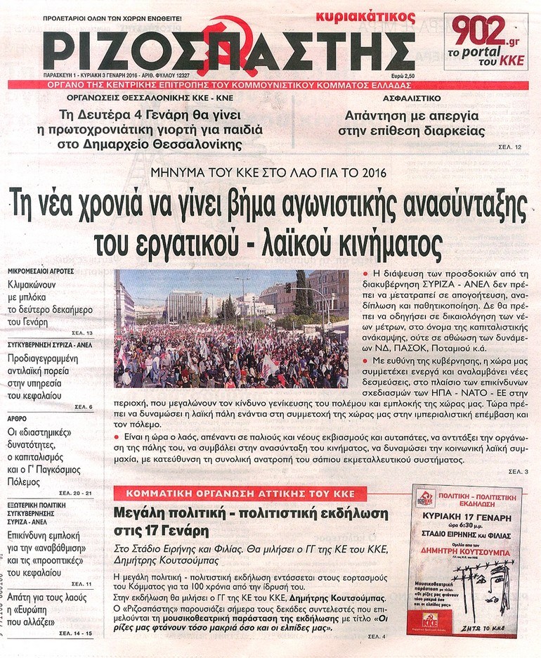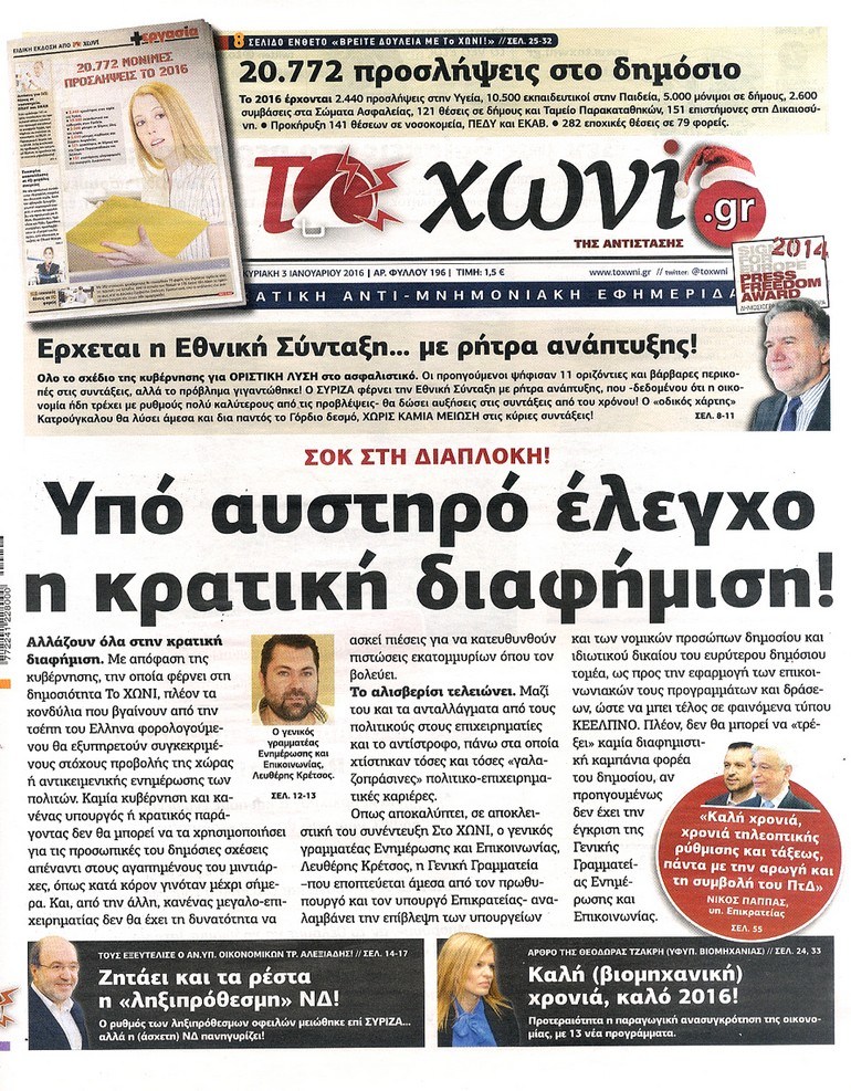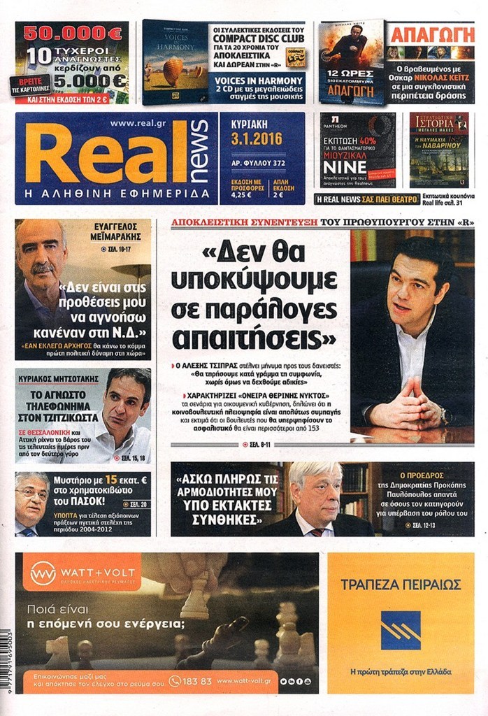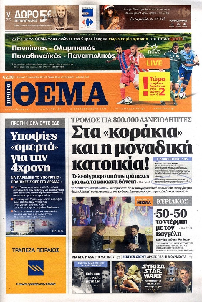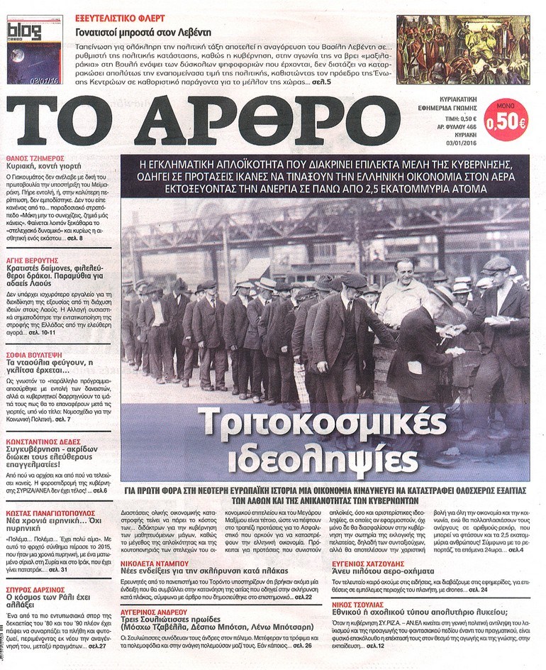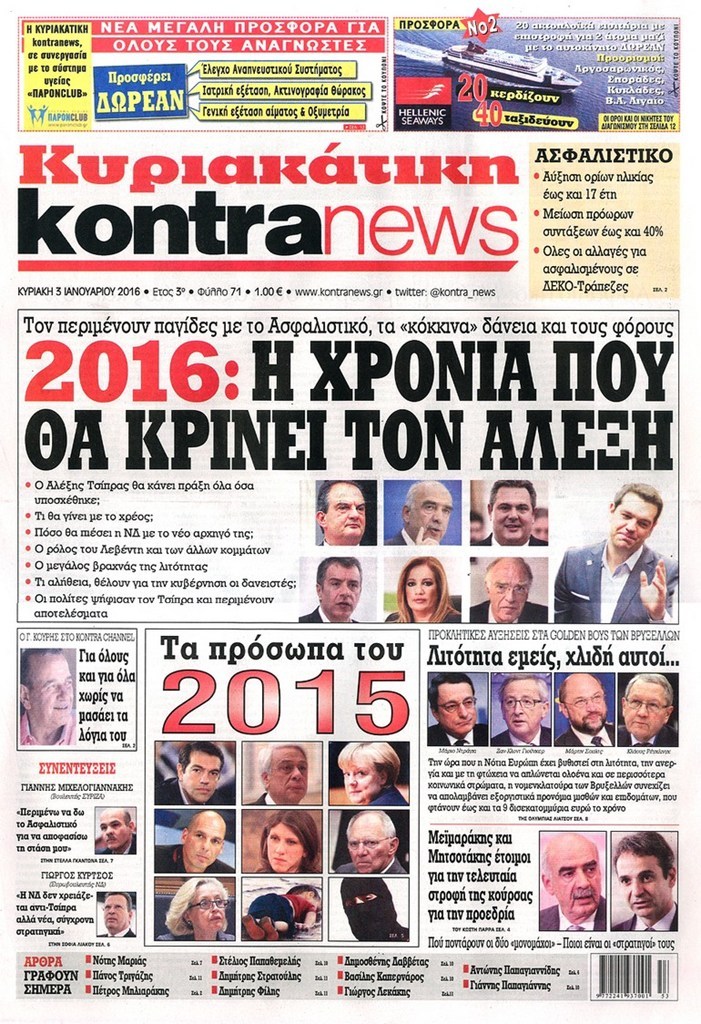 Τα πρωτοσέλιδα της Κυριακής 3-1-2016