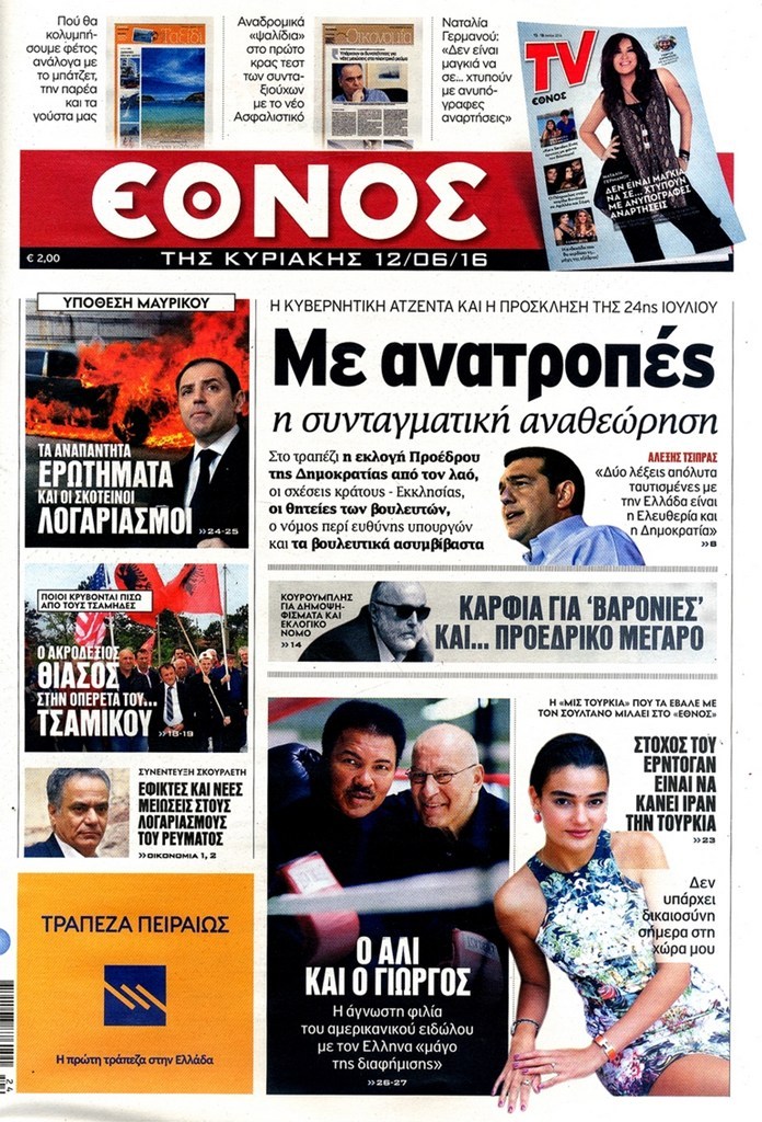 Τα πρωτοσέλιδα της Κυριακής 5-6-2016