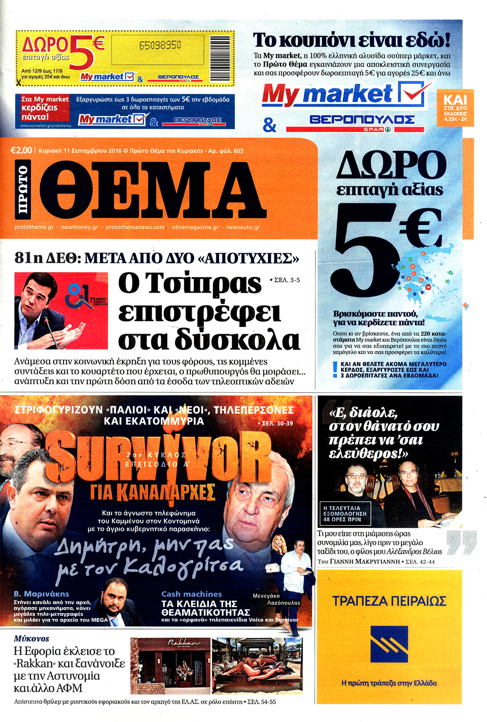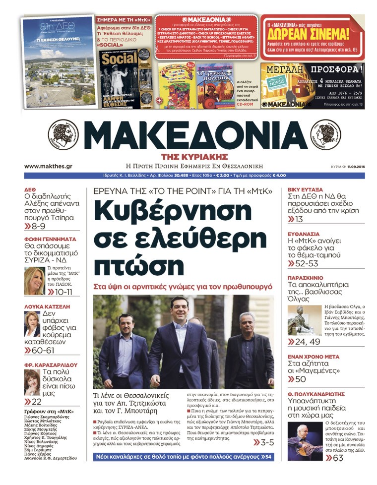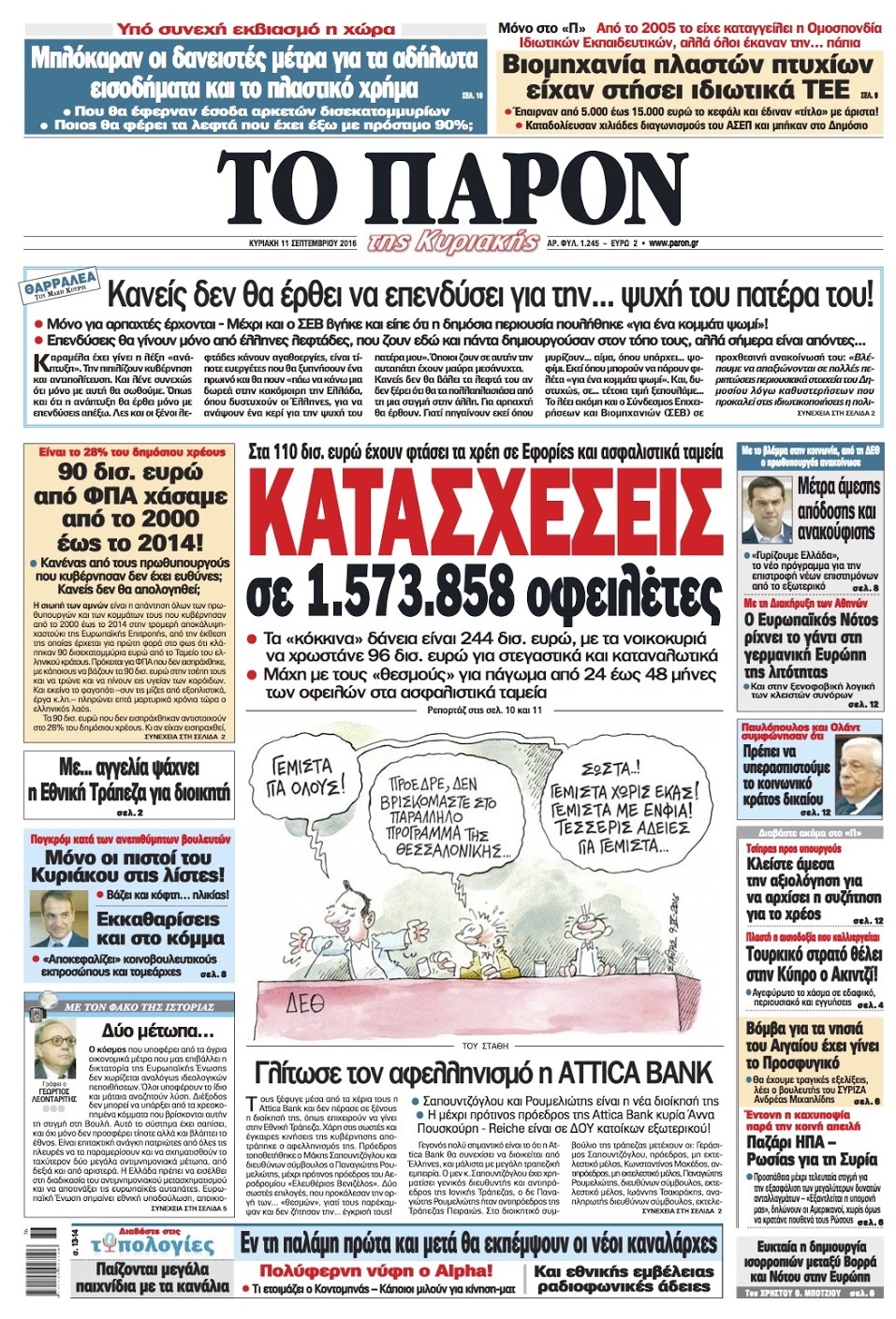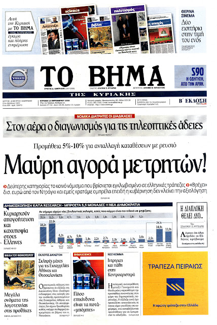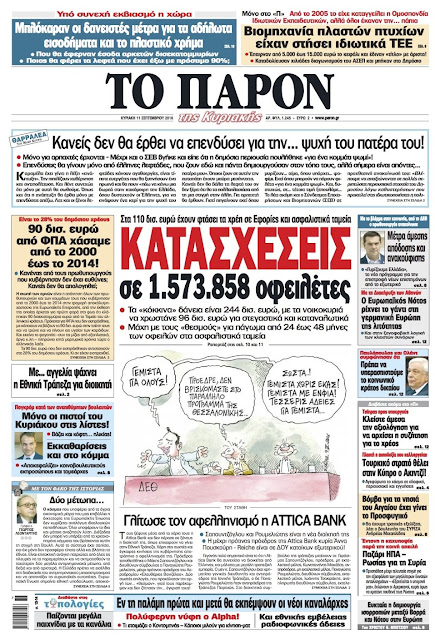 Τα πρωτοσέλιδα της Κυριακής 11-9-2016