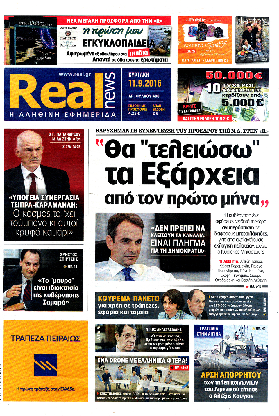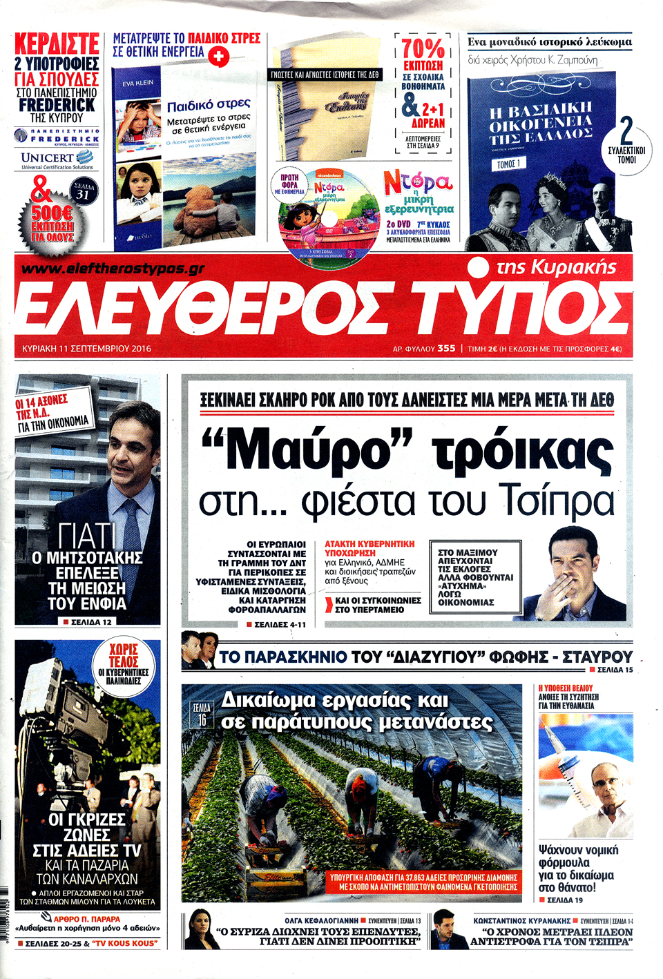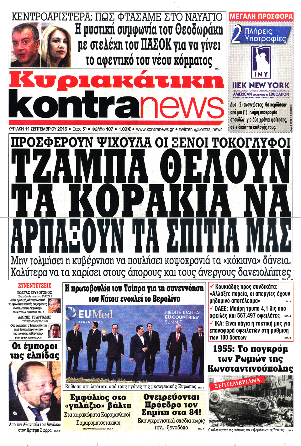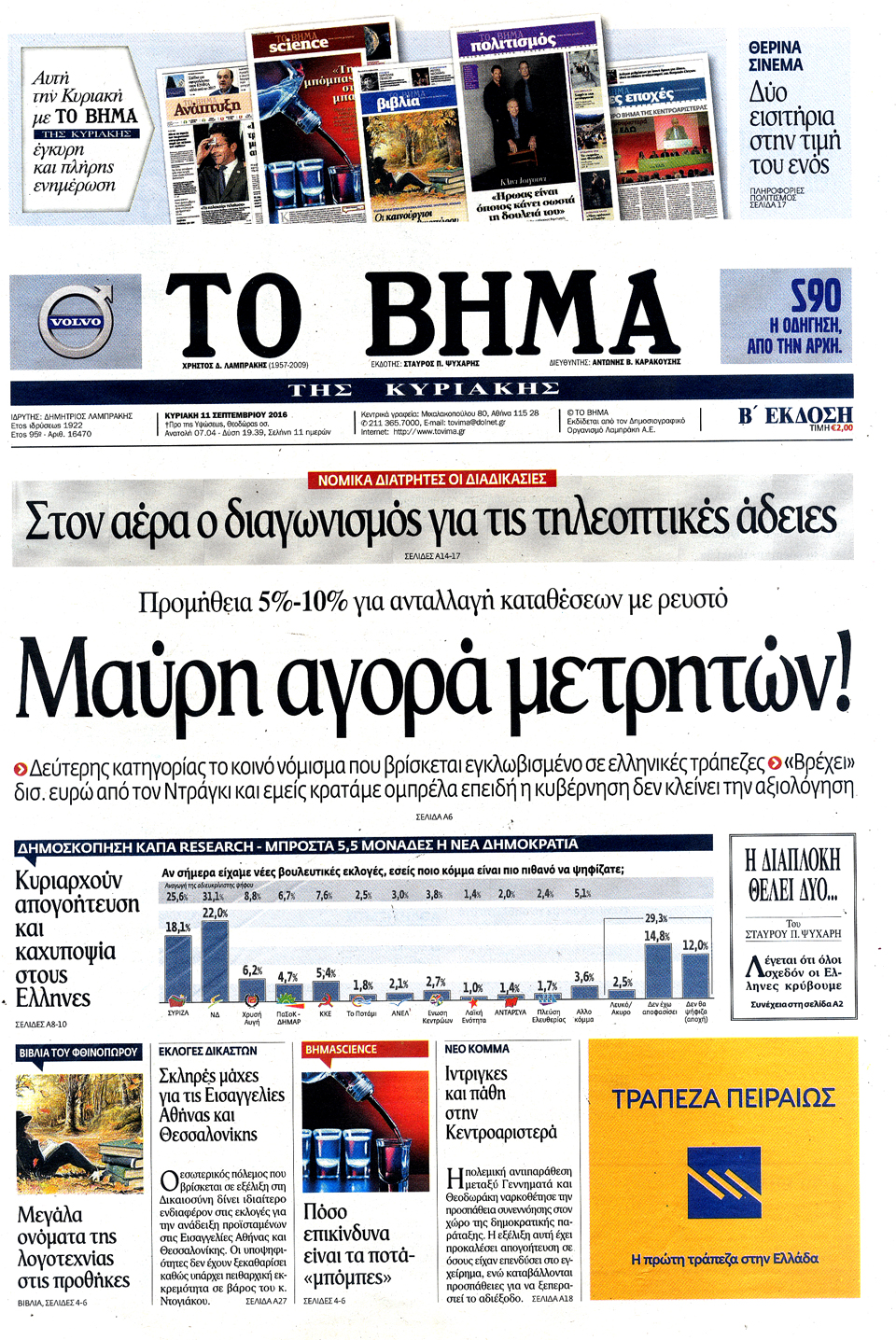 Τα πρωτοσέλιδα της Κυριακής 11-9-2016
