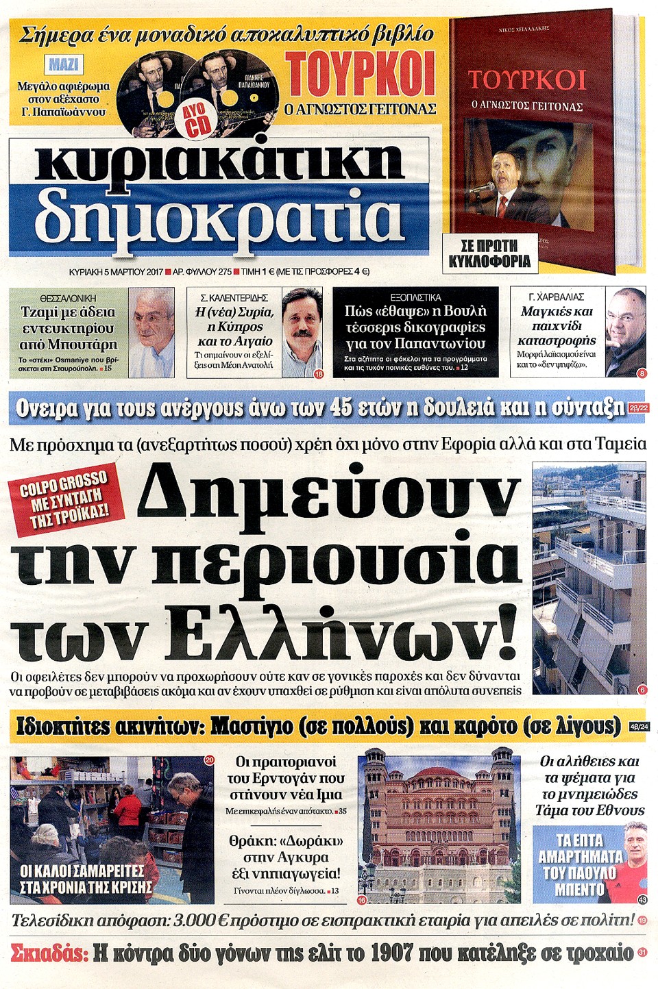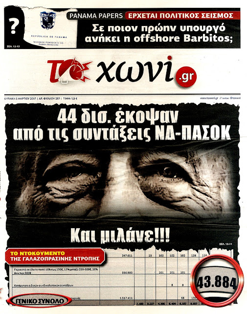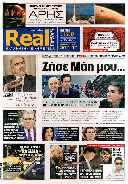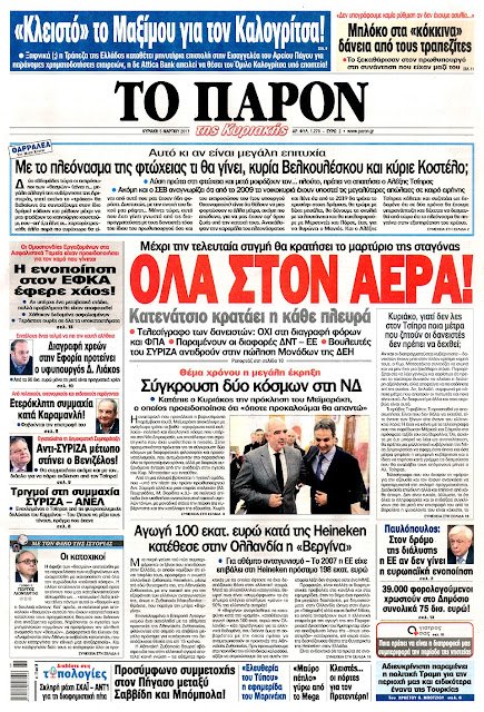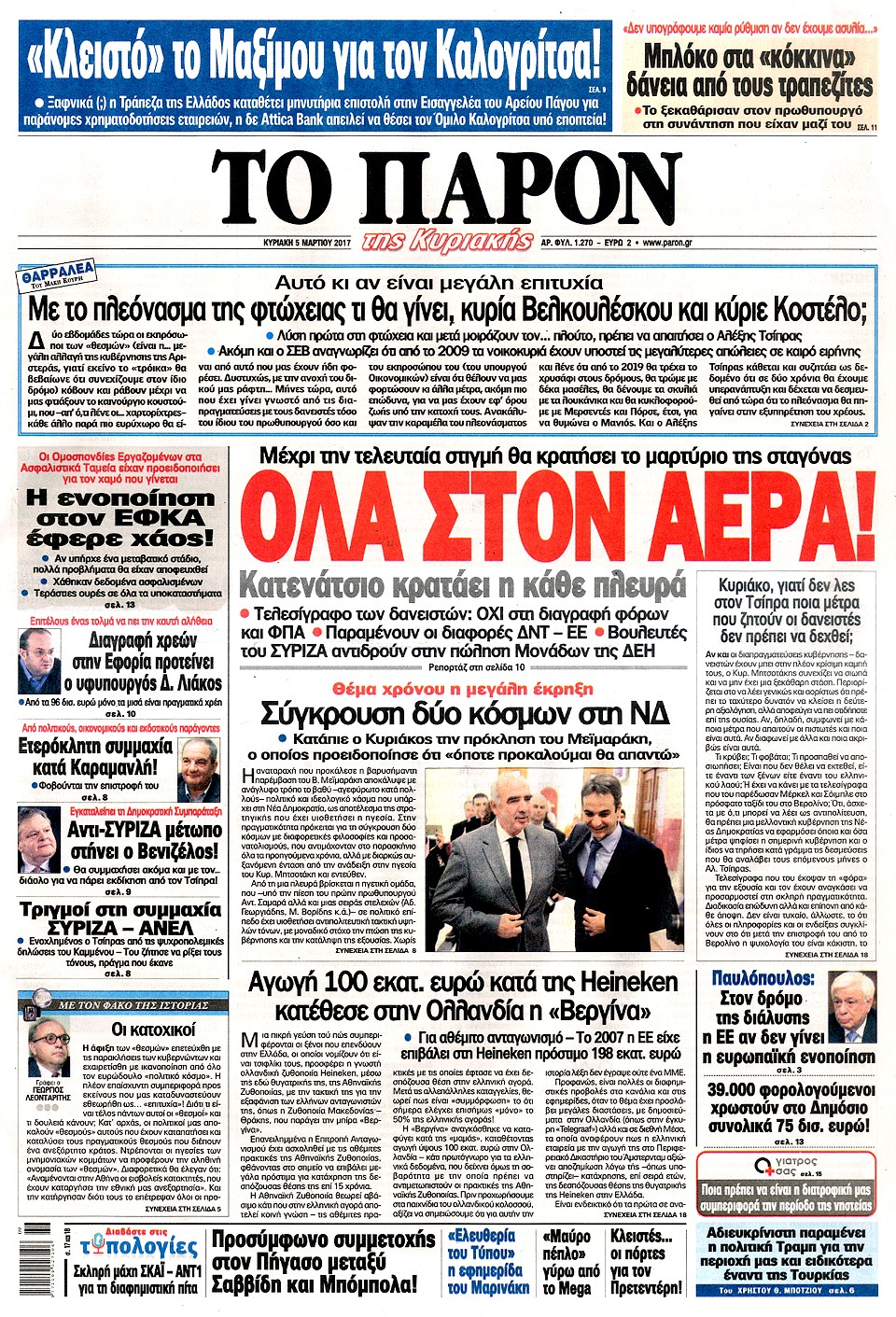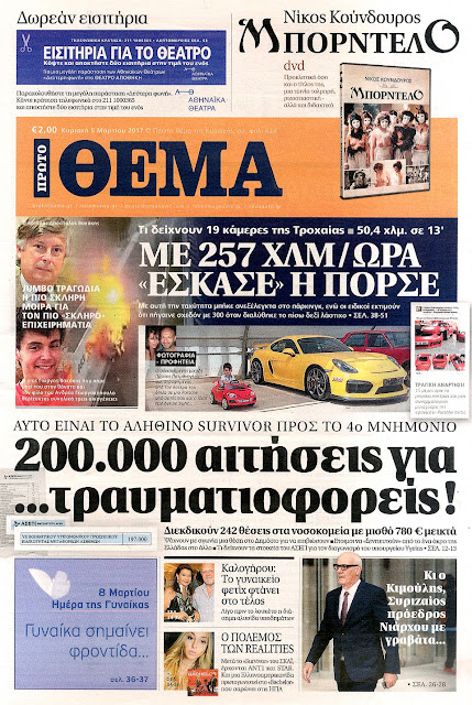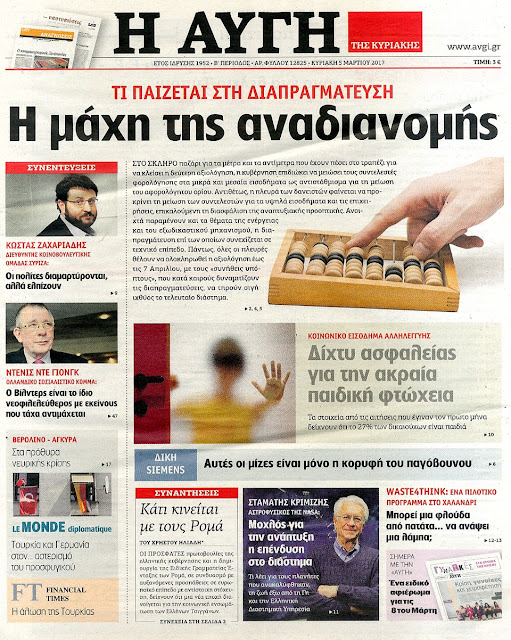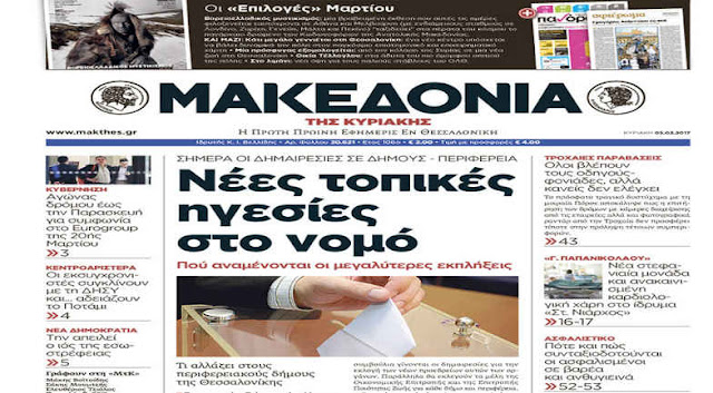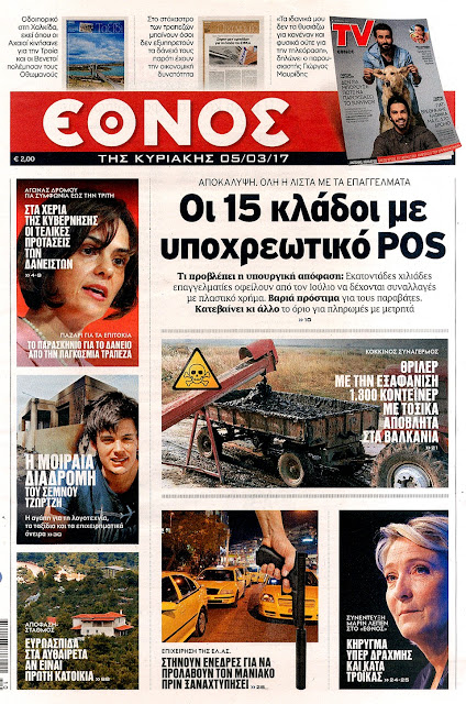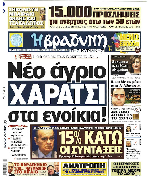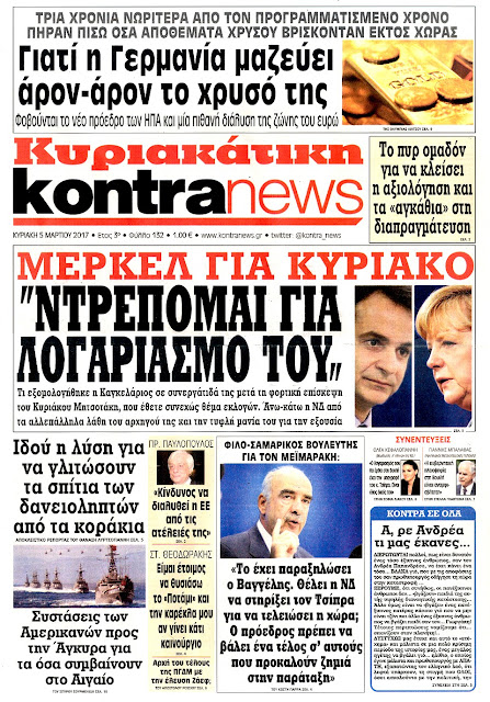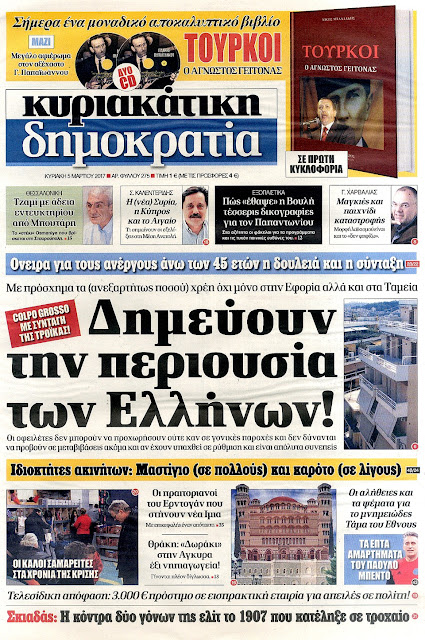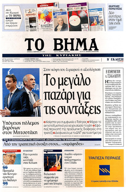 Τα πρωτοσέλιδα της Κυριακής 5-3-2017
