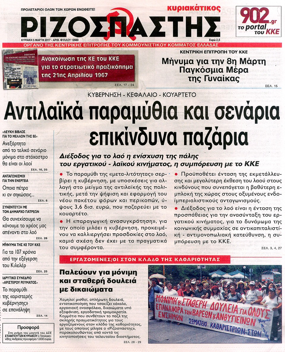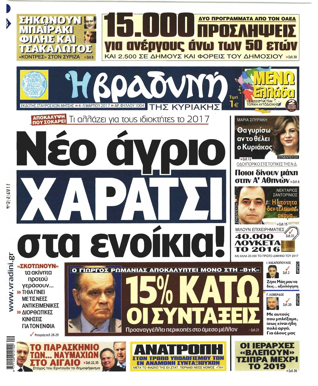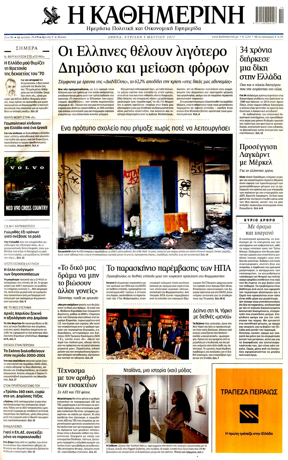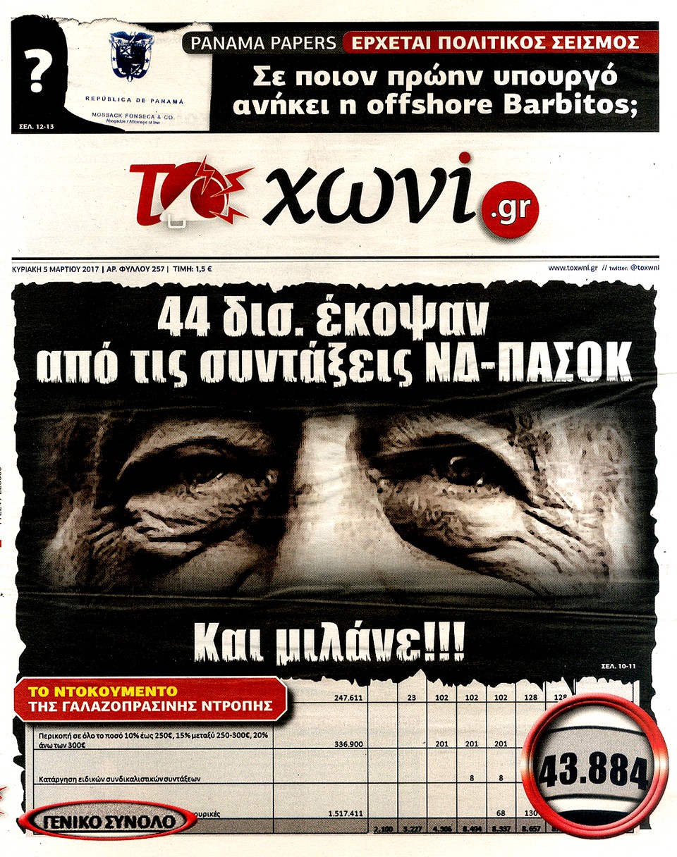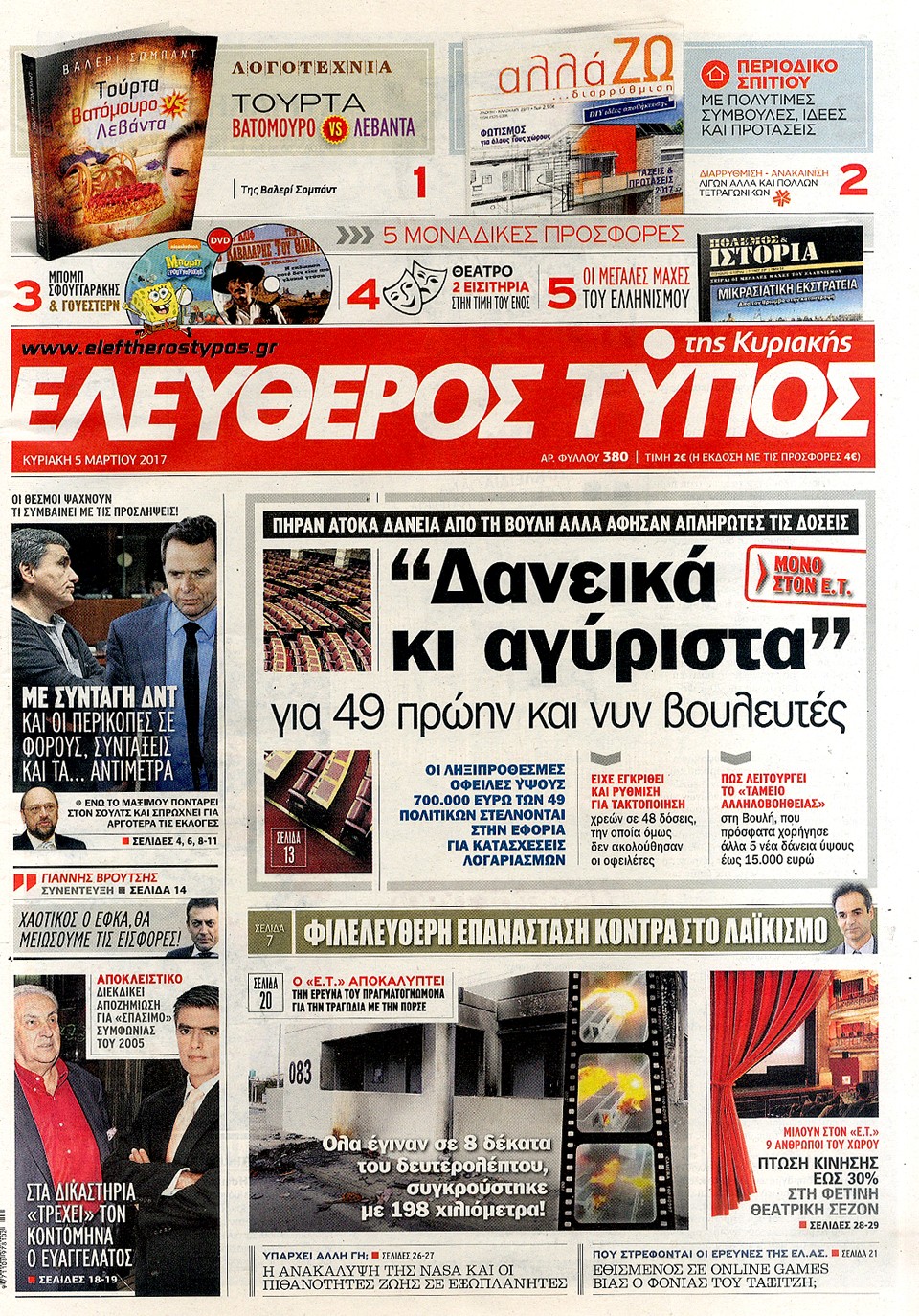 Τα πρωτοσέλιδα της Κυριακής 5-3-2017