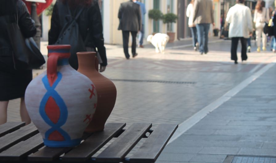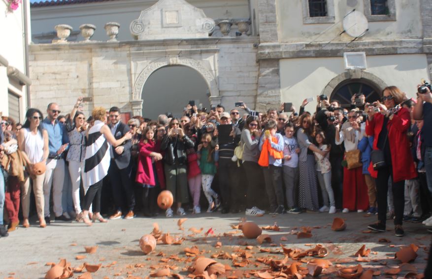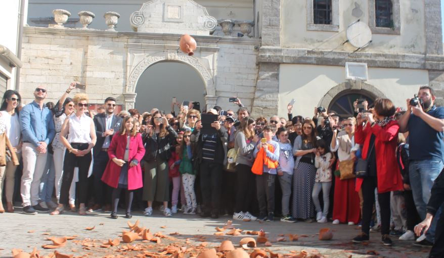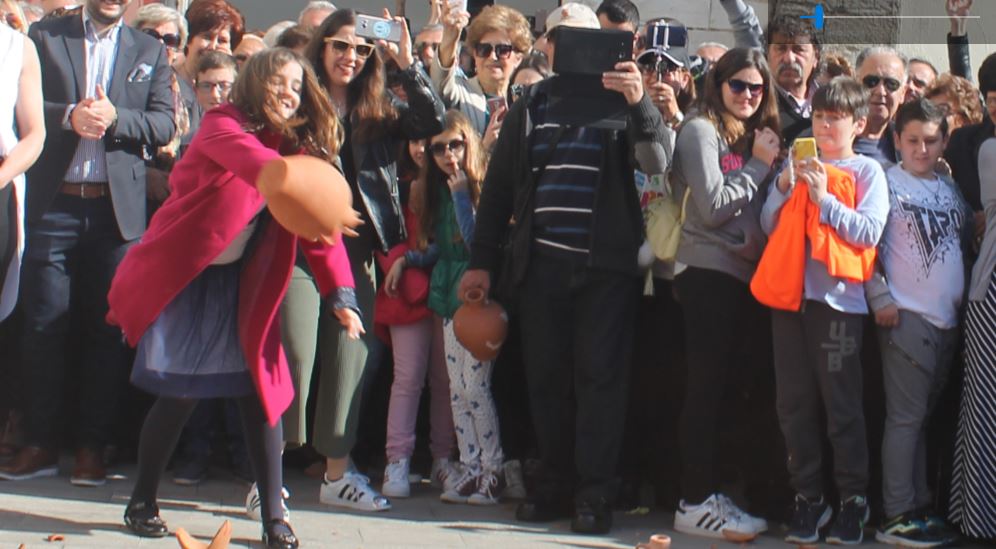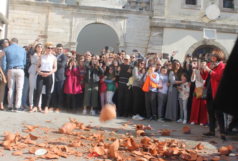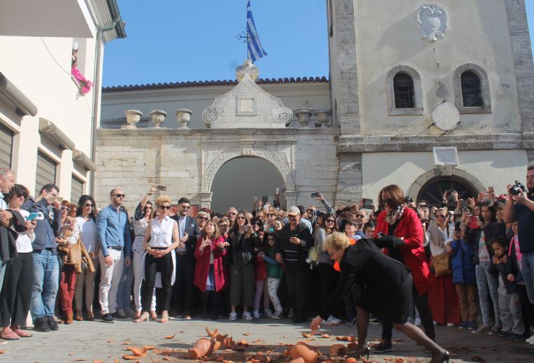 Δεκάδες πήλινα αντικείμενα έσπασαν στο πλακόστρωτο ενώ οι κροτίδες που έπεφταν έστέλναν σε όλη την πόλη το χαρμόσυνο Αναστάσιμο μήνυμα.