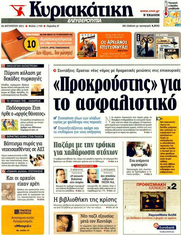 Κυριακάτικα Πρωτοσέλιδα.........28/8/2011