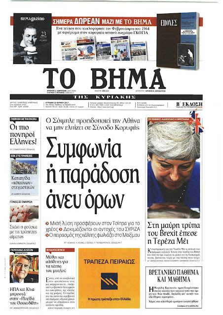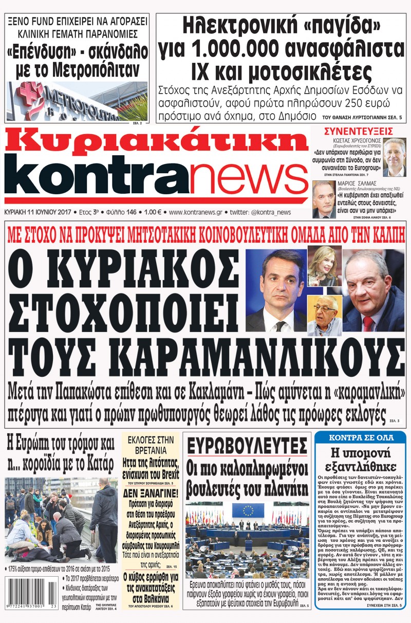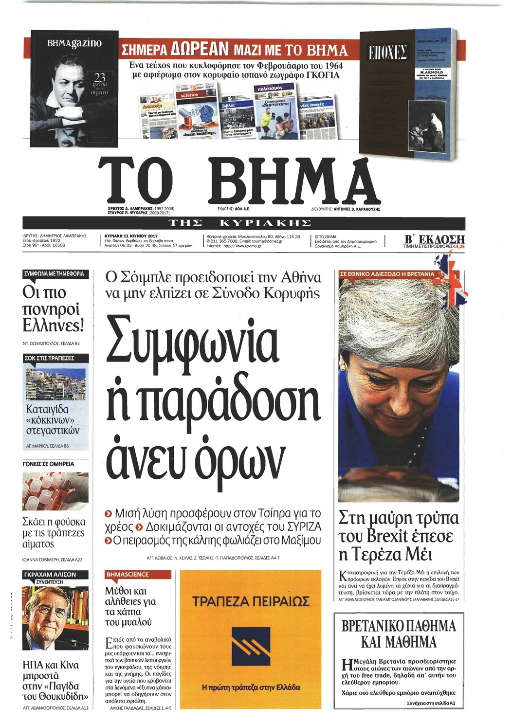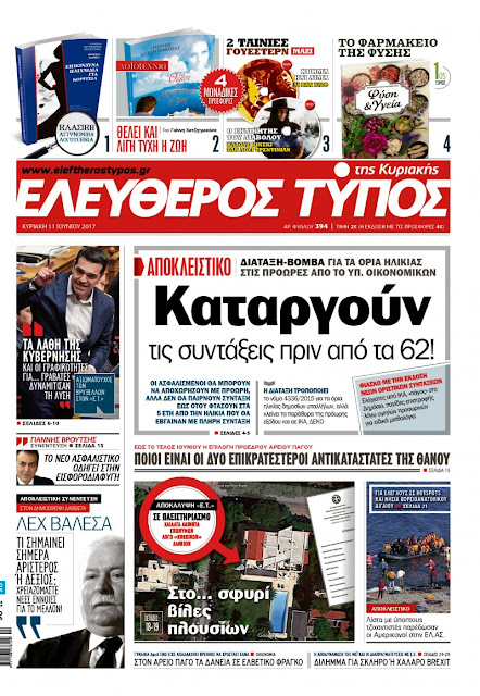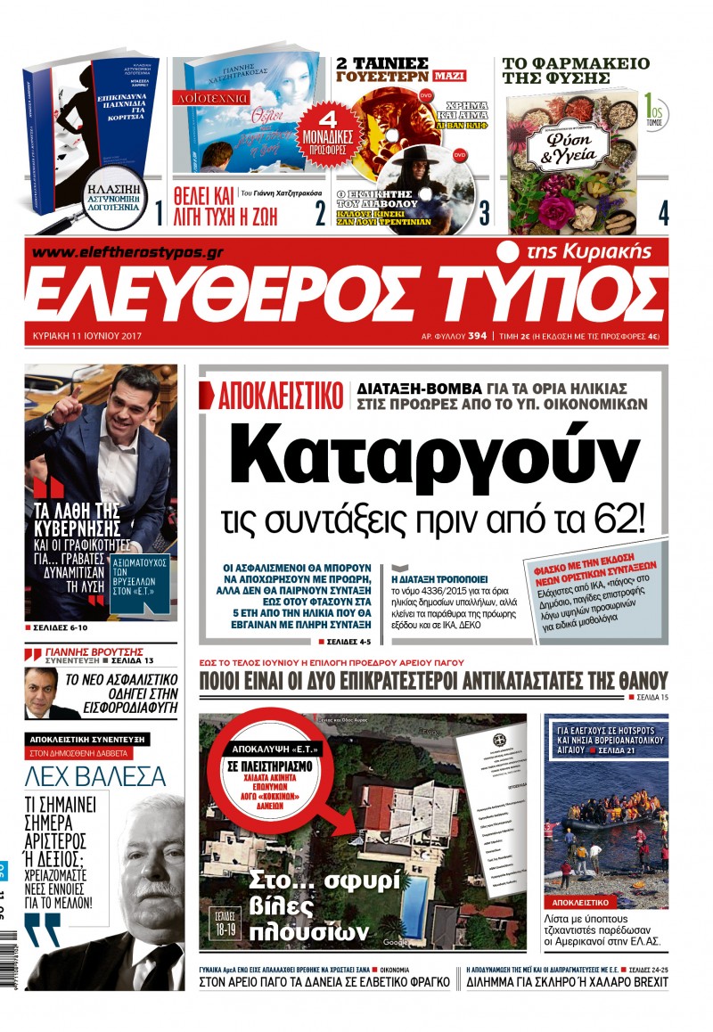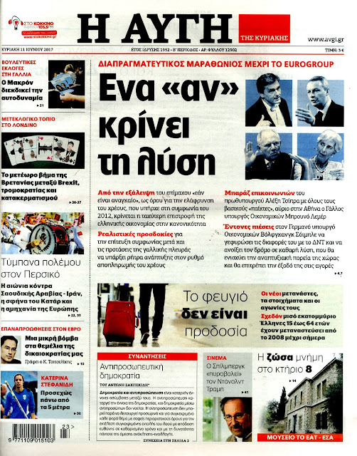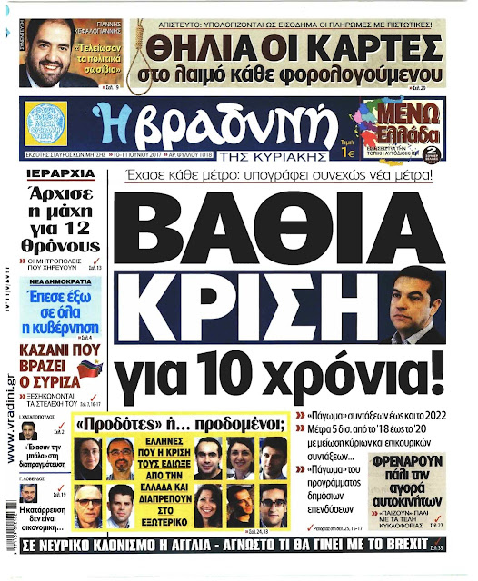 Τα πρωτοσέλιδα της Κυριακής 11-6-2017