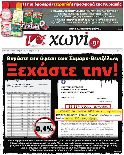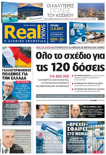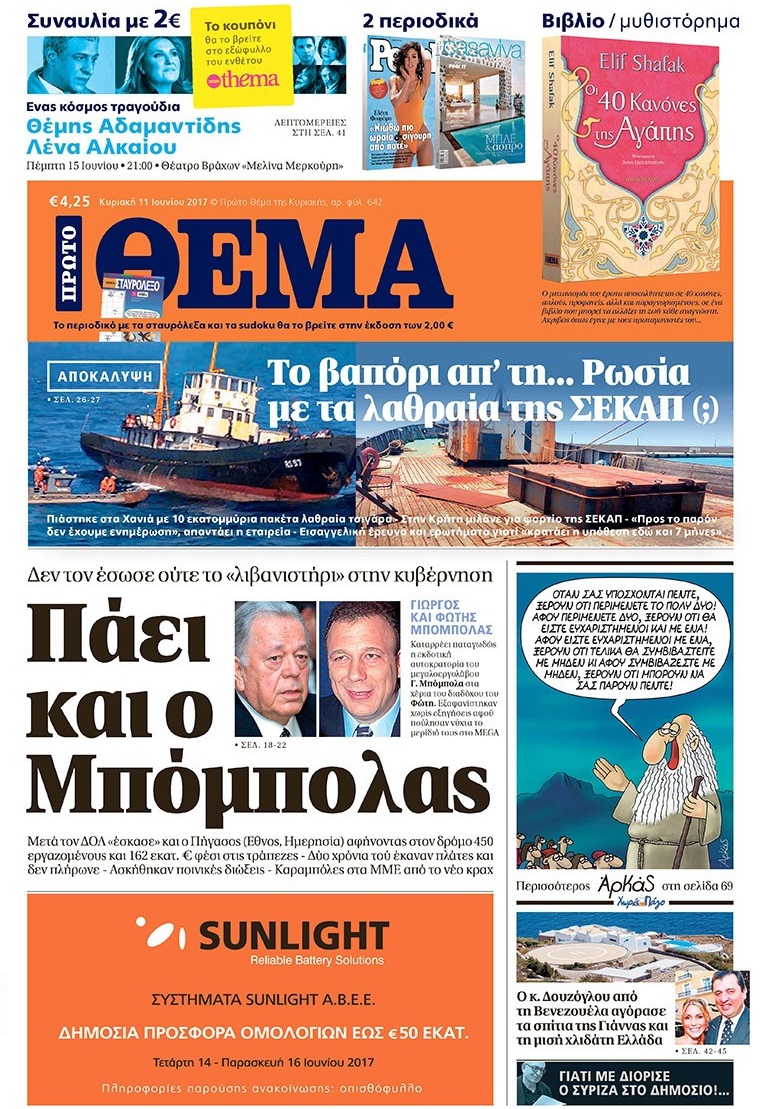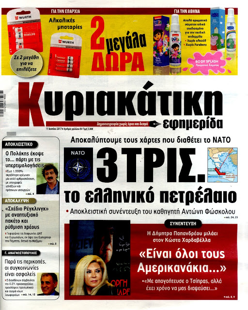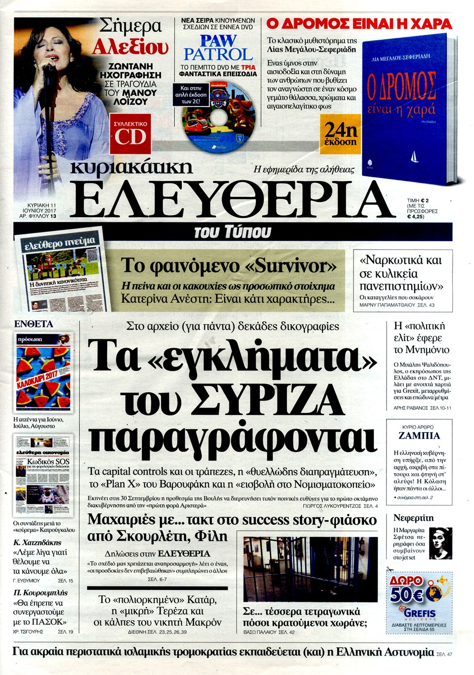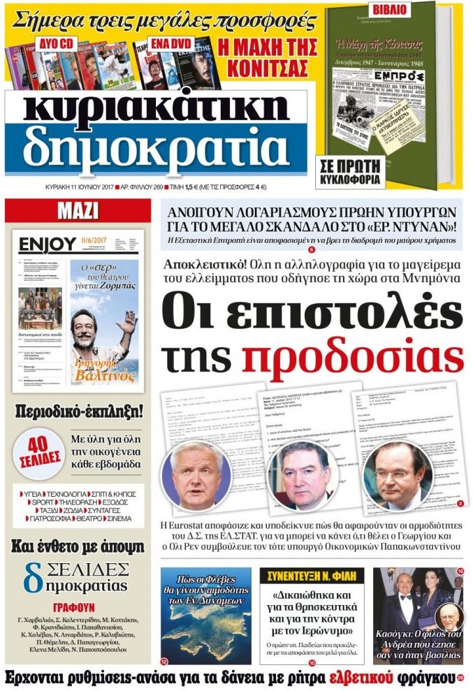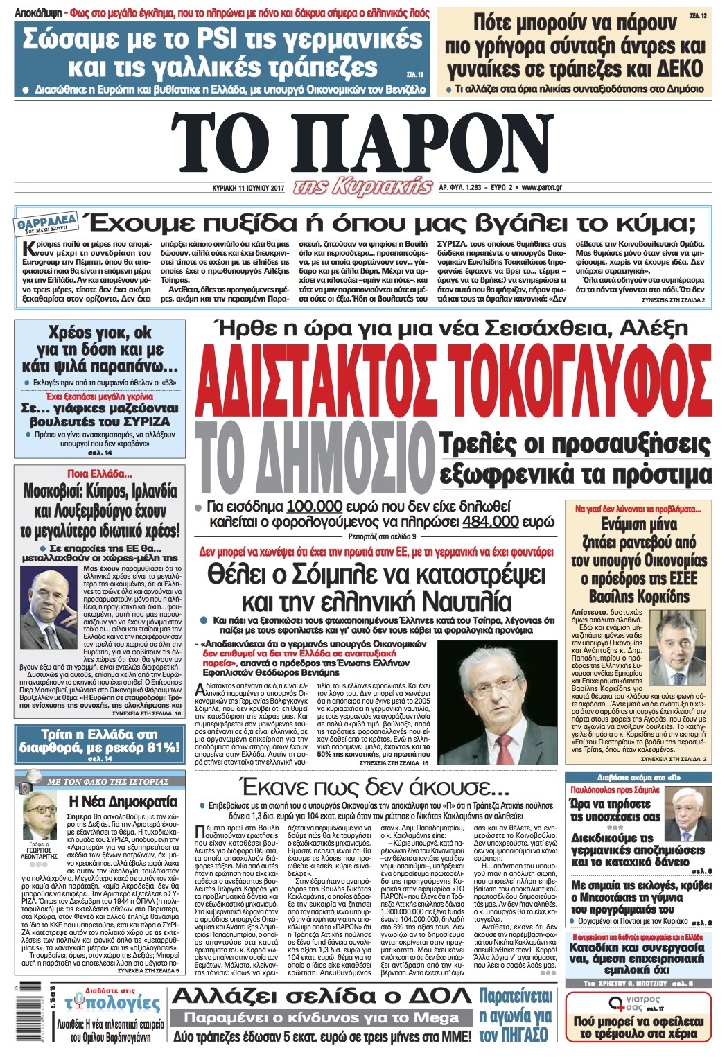 Τα πρωτοσέλιδα της Κυριακής 11-6-2017