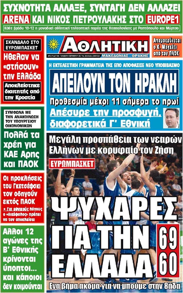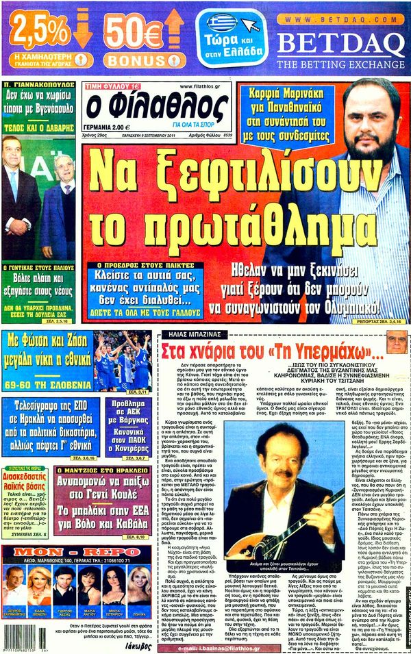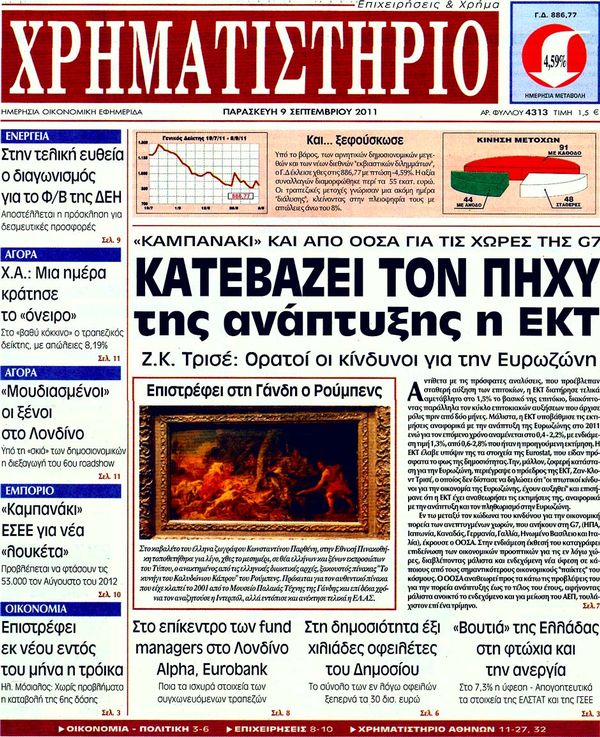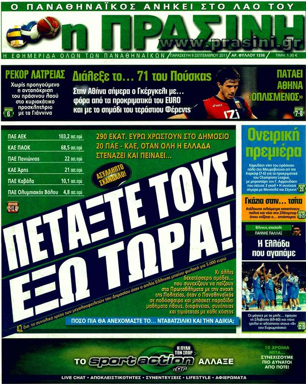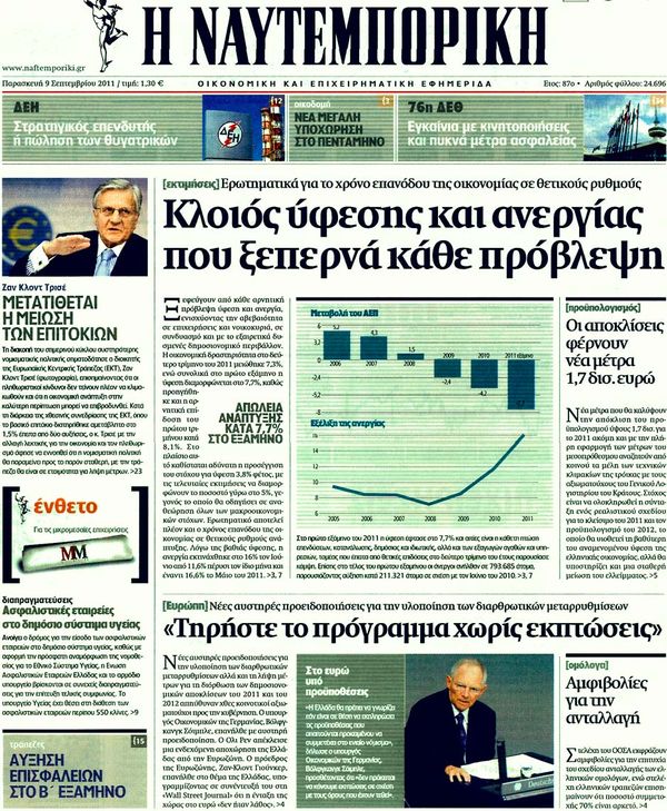 Ολα τα πρωτοσέλιδα , Πολιτικών , Οικονομικών, Αθλητικών εφημερίδων