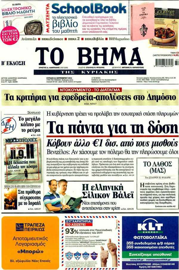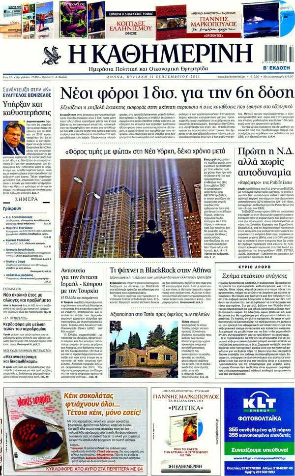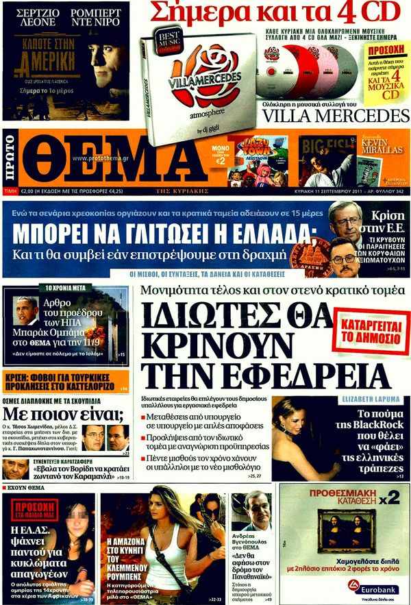 Κυριακάτικα Πρωτοσέλιδα...11/9/2011