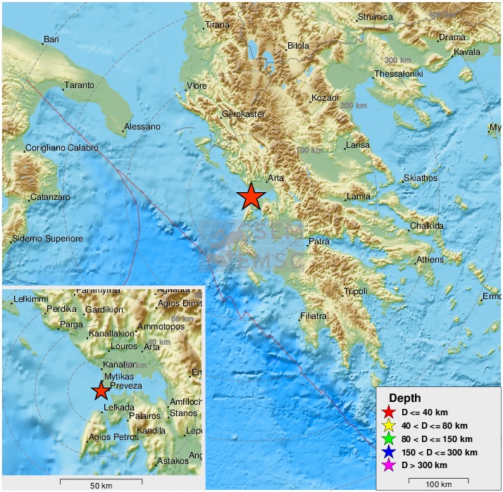 Ασθενής σεισμική δόνηση 3,9 R σημειώθηκε πριν από λίγο δυτικά της Πρέβεζας