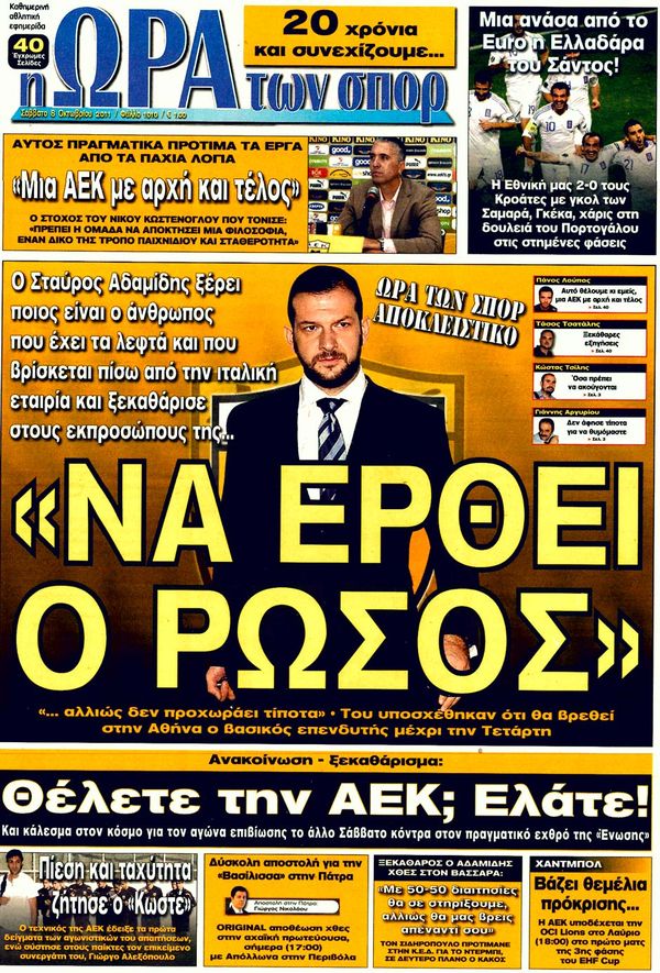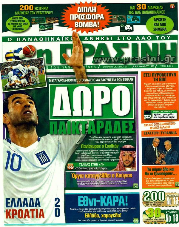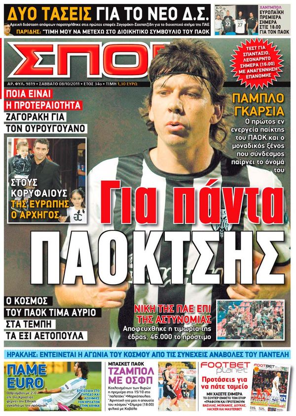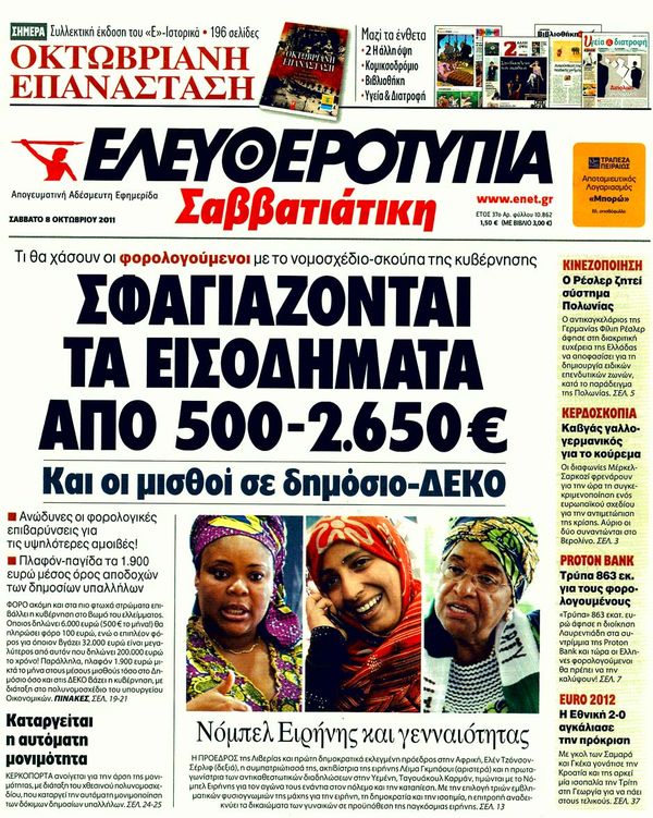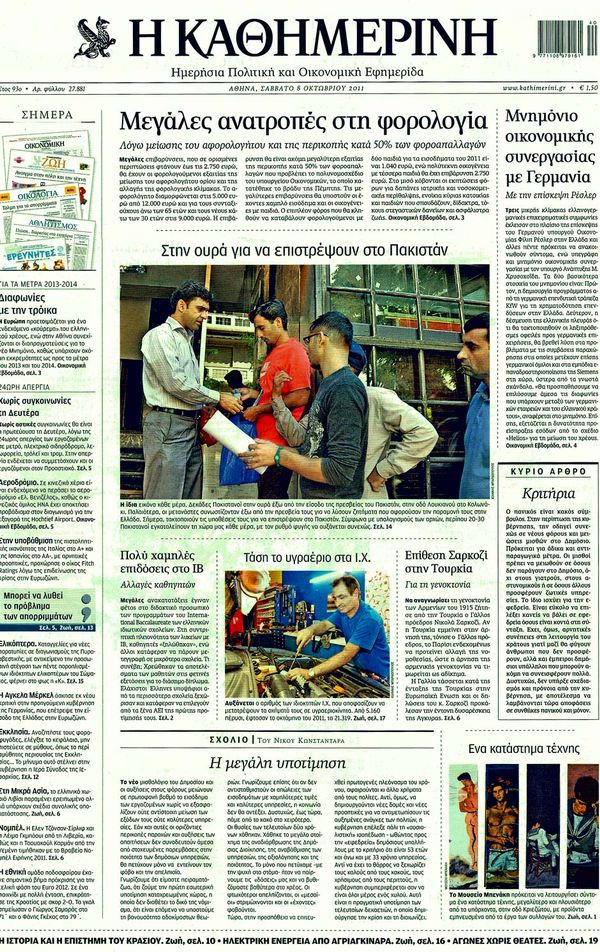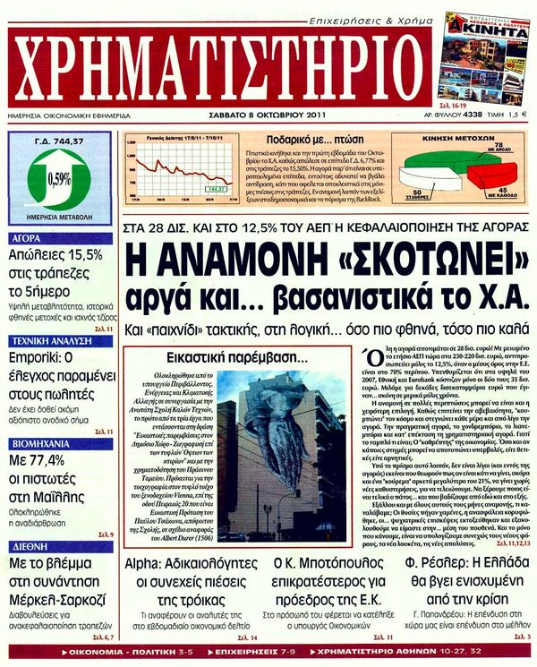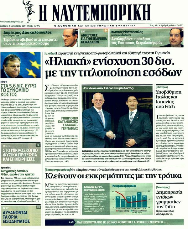 Πρωτοσέλιδα εφημερίδων .8/10/2011