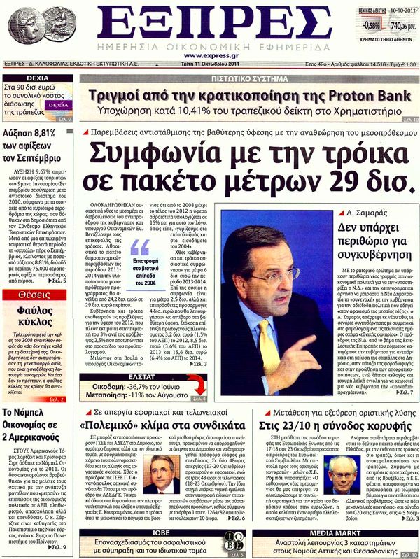Οι εφημερίδες σήμερα ...11/10/2011