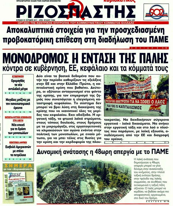 Κυριακάτικα Πρωτοσέλιδα 23/10/2011