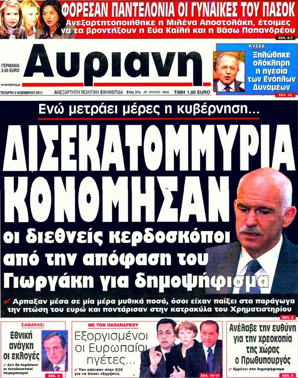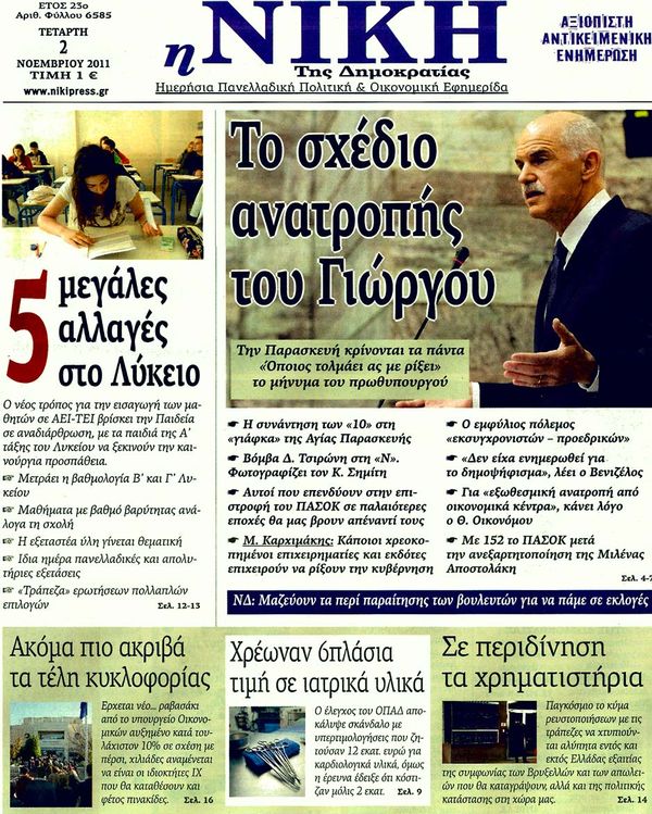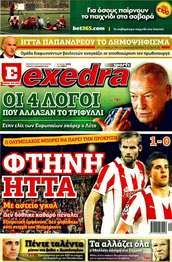 Πολιτικές & Αθλητικές εφημερίδες 2-11-2011