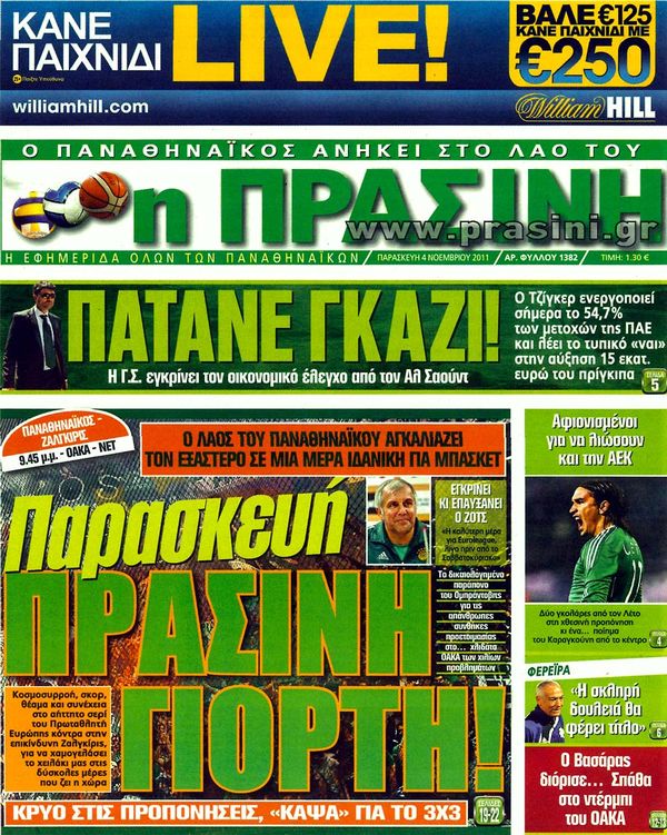 Πολιτικές & Αθλητικές εφημερίδες 4-11-2011