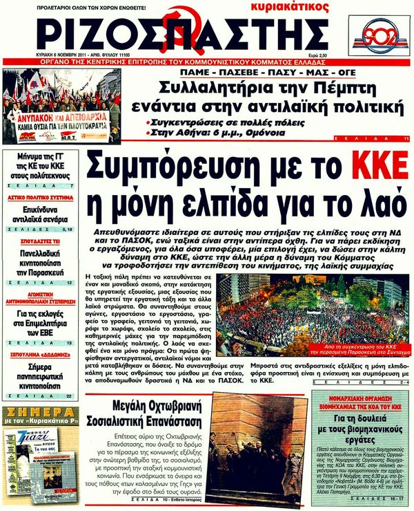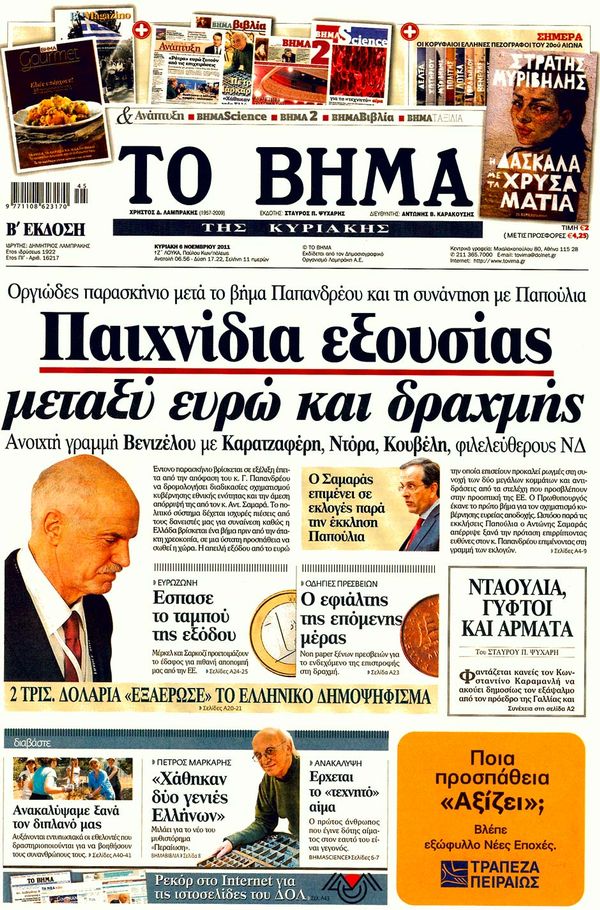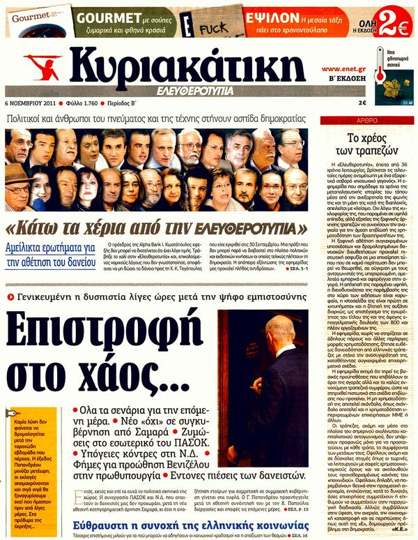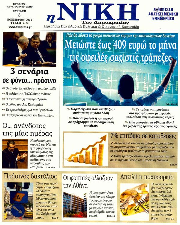 Κυριακάτικα Πρωτοσέλιδα 6-11-2011