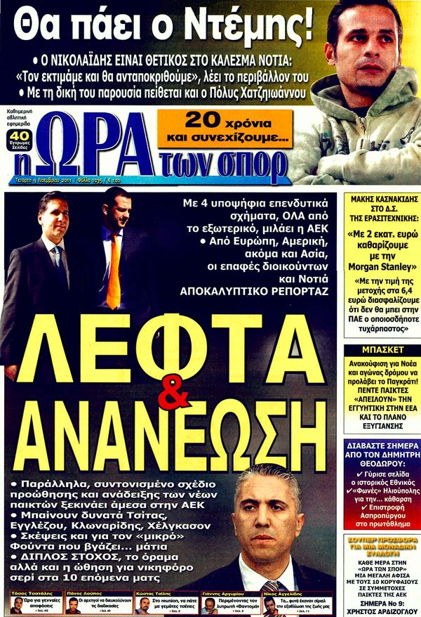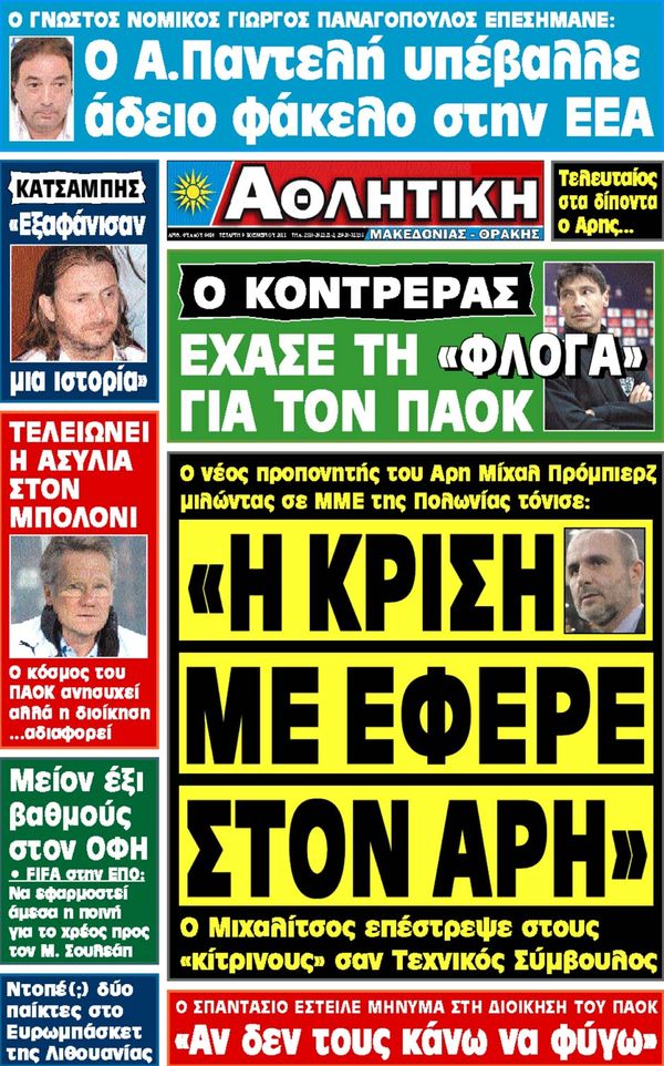 Πολιτικές & Αθλητικές εφημερίδες 9-11-2011