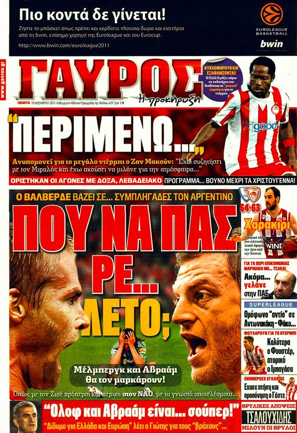 Πολιτικές & Αθλητικές εφημερίδες 10 -11-2011