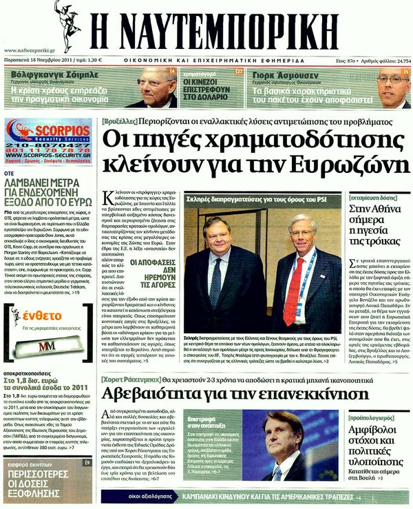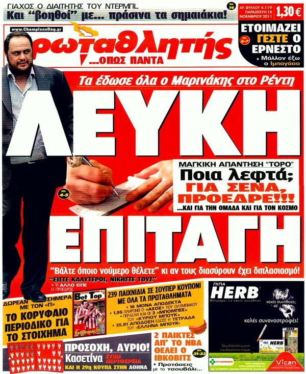 Πολιτικές & Αθλητικές εφημερίδες 18-11-2011