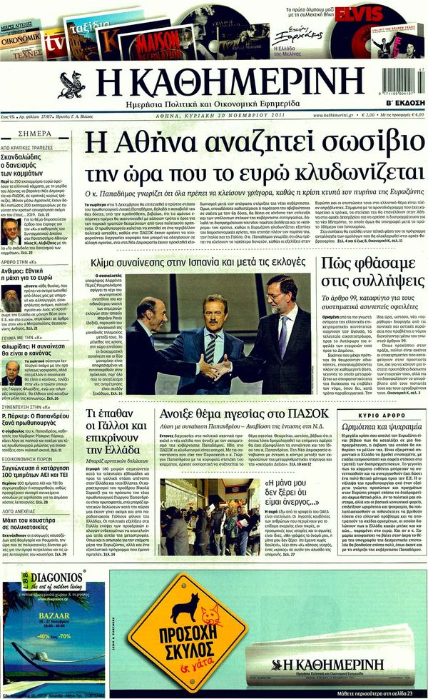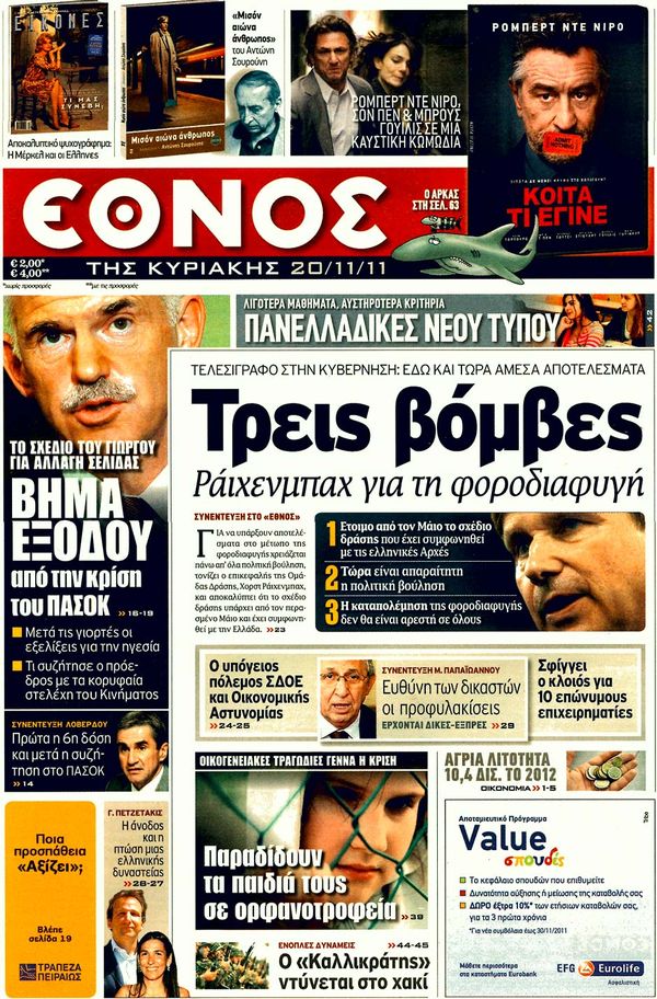 Κυριακάτικα Πρωτοσέλιδα 20 -11-2011