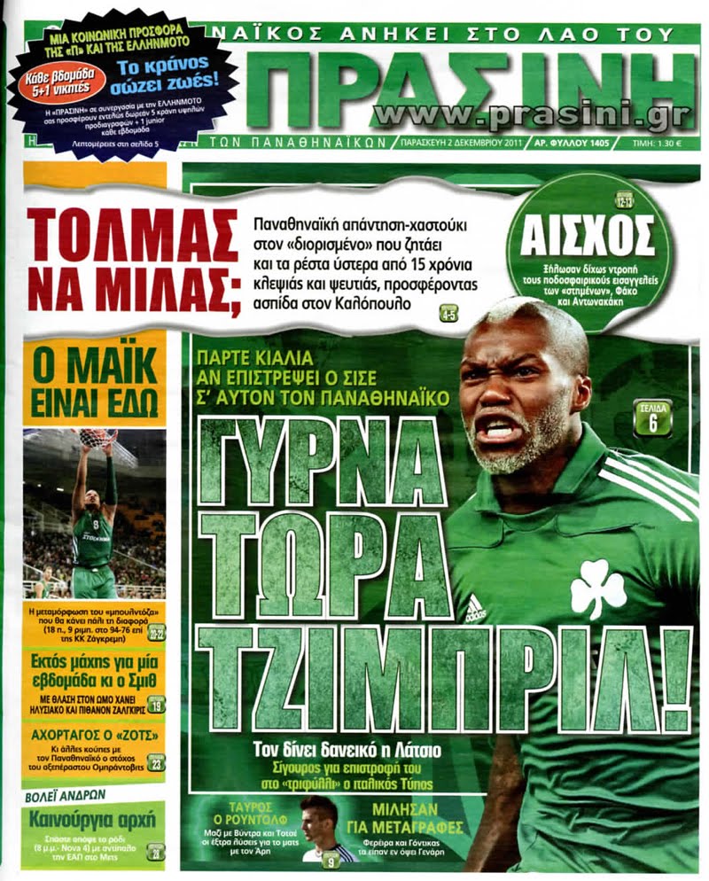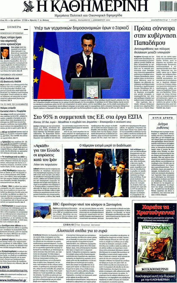 Πολιτικές & Αθλητικές εφημερίδες 2-12-2011